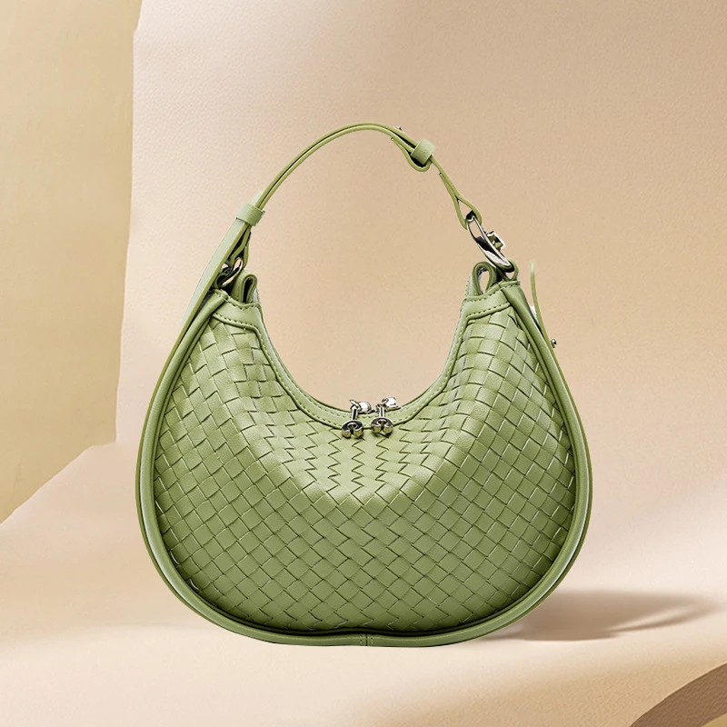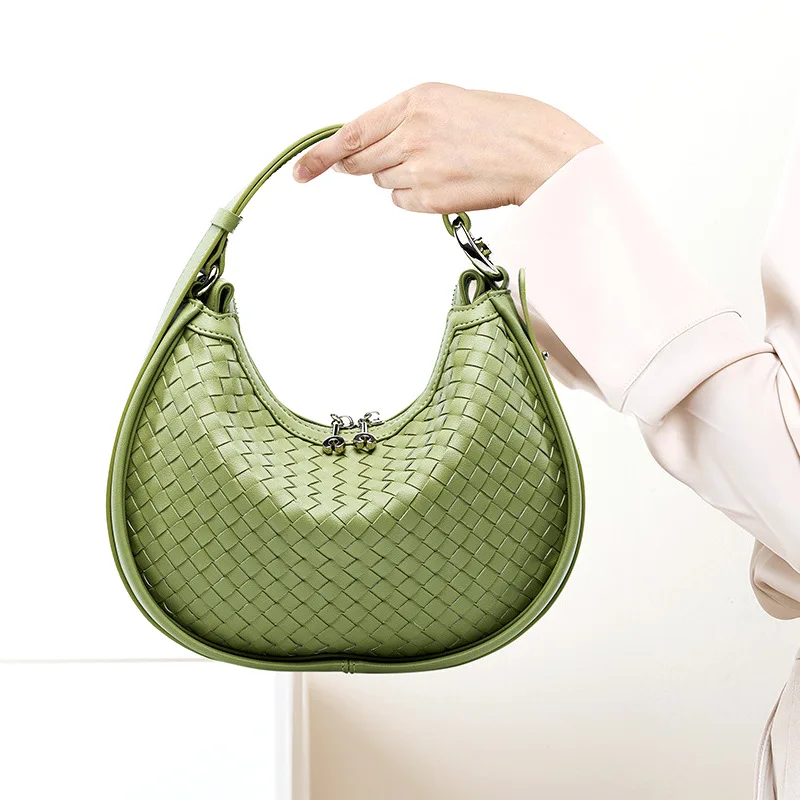 Custom New Ladies Tote Designer Woven Underarm Shoulder Crossbody Purses Hand Bag Half Moon PU Leather Handbags for Women