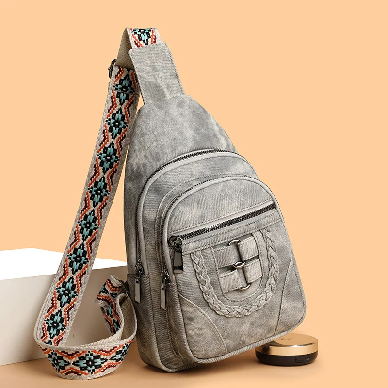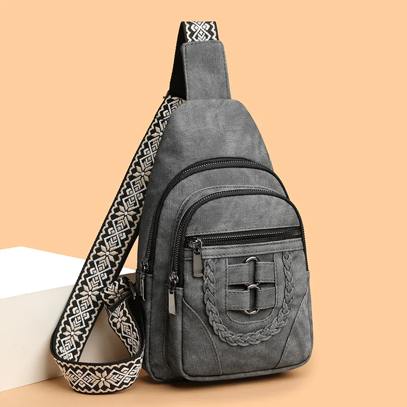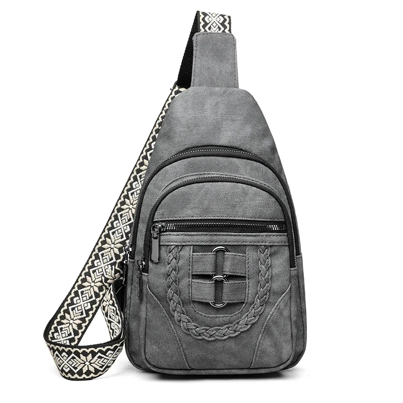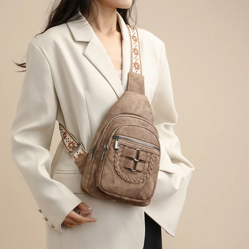 Custom Logo Retro Luxury PU Leather Waterproof Chest Bag Travel Crossbody Ladies Sling Bag With Anti-theft Pocket