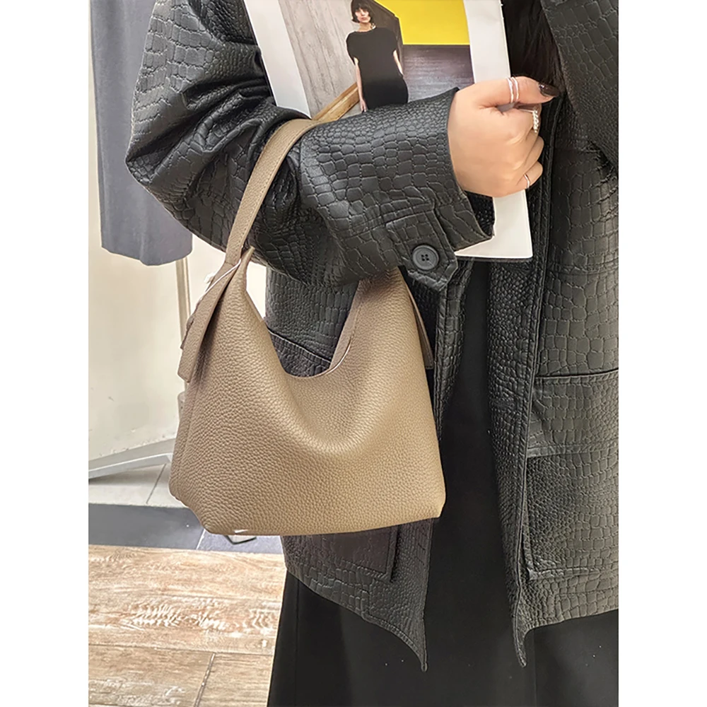 Designer Vintage Popular Ladies Women Crossbody Shoulder Hand Bags Fashion Casual Large Capacity Cowhide Leather Bucket Bag 2026