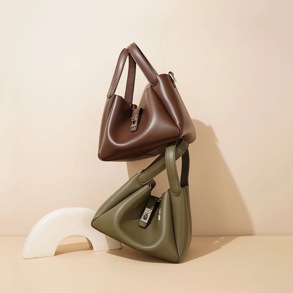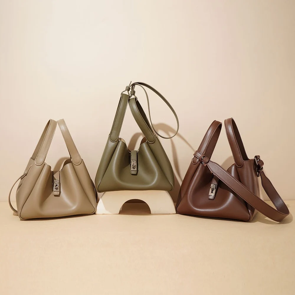 Designer Vintage Popular Ladies Women Crossbody Shoulder Hand Bags Fashion Casual Large Capacity Cowhide Leather Bucket Bag 2026