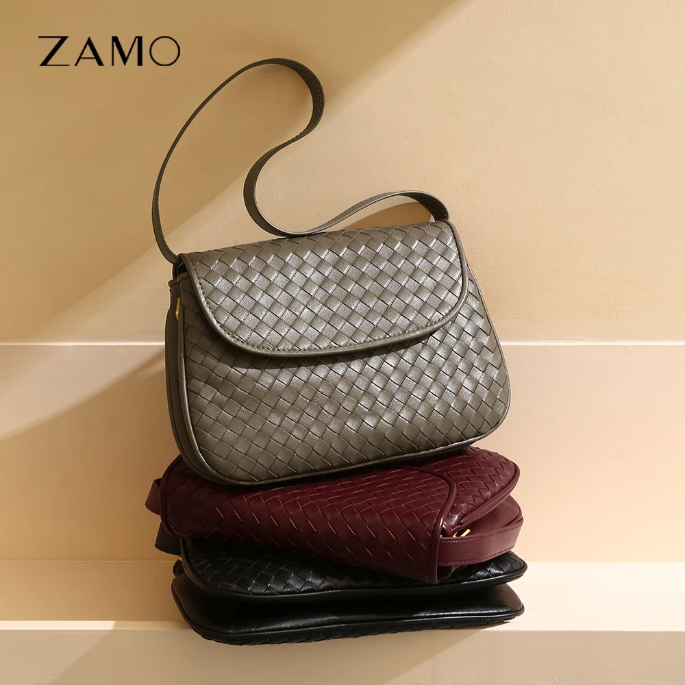 Supplier Wholesale OEM/ODM Plain Fashion Ladies Small Square Bags Woven Genuine Leather Crossbody Bag for Women High Quality