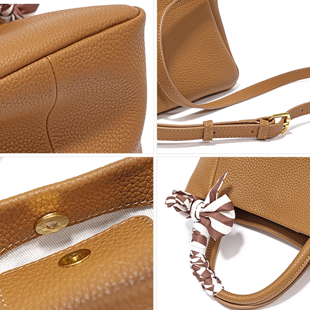Designer Vintage Popular Ladies Women Crossbody Shoulder Hand Bags Fashion Casual Large Capacity Cowhide Leather Bucket Bag 2026