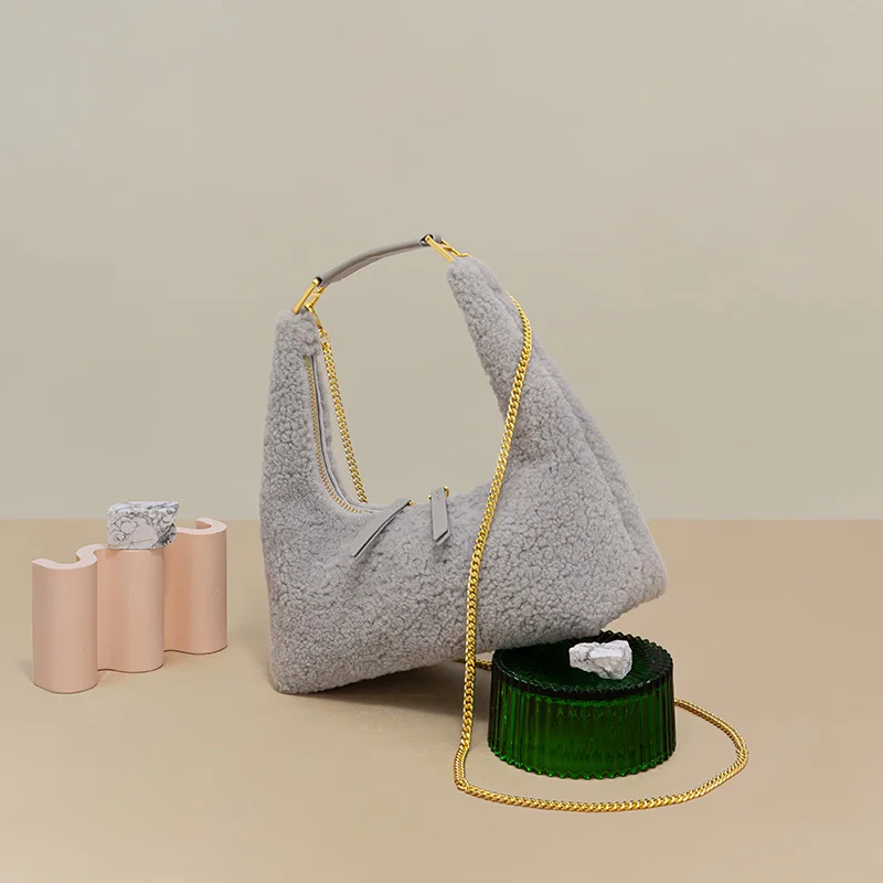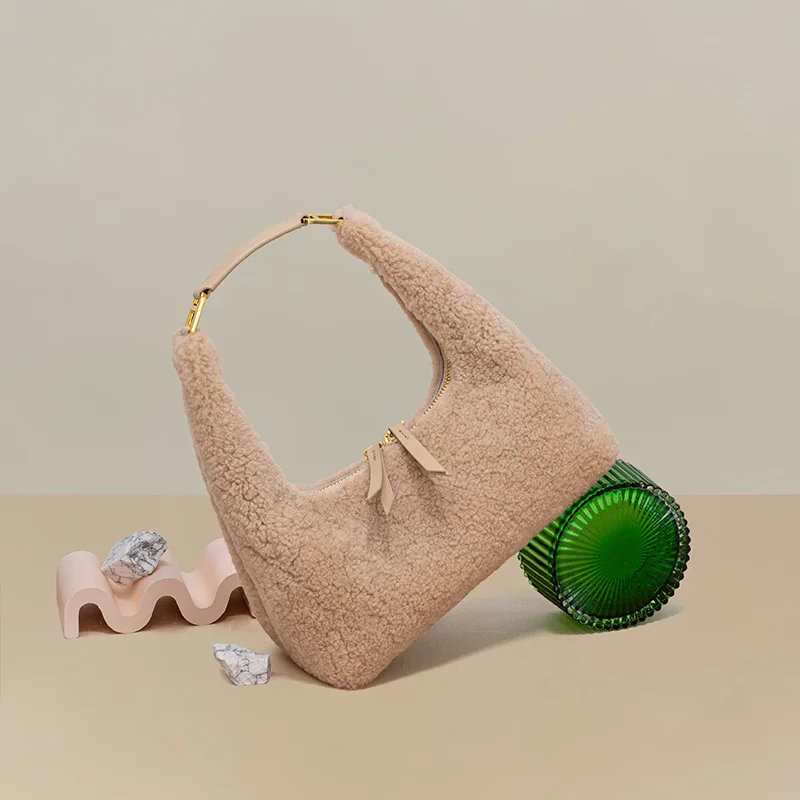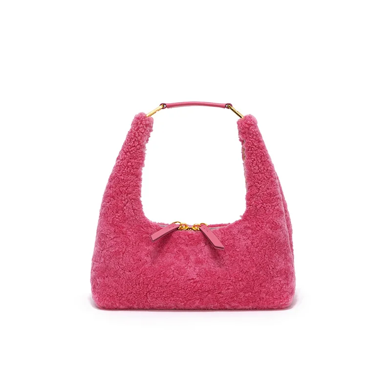 Autumn Winter Real Lamb Leather Lady Lady Bag Soft Warm Lamb Wool Plush Genuine Leather Furry Handbag for Lady