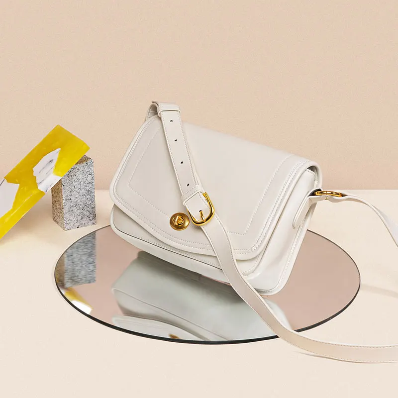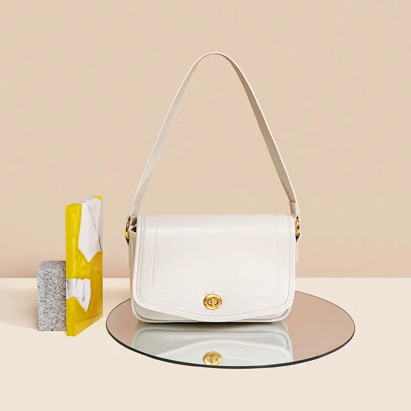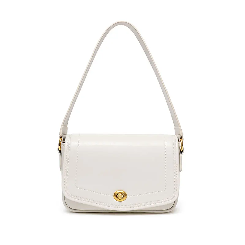 White Simple Large Commute Genuine Leather Women Handbags Cowhide Soft China Factory Fashion Shoulder Bags