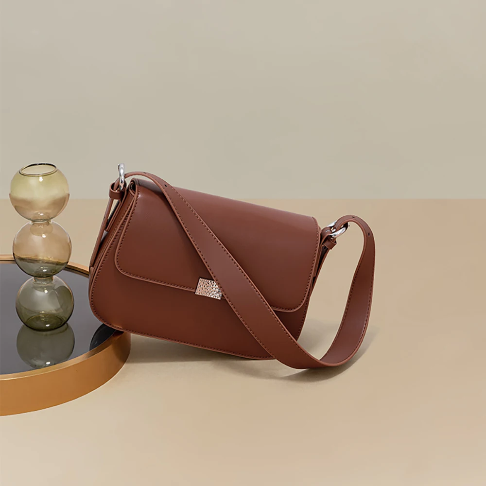 High Quality Cowhide Leather Women Shoulder Bag Retro Solid Color Genuine Leather Square Bags