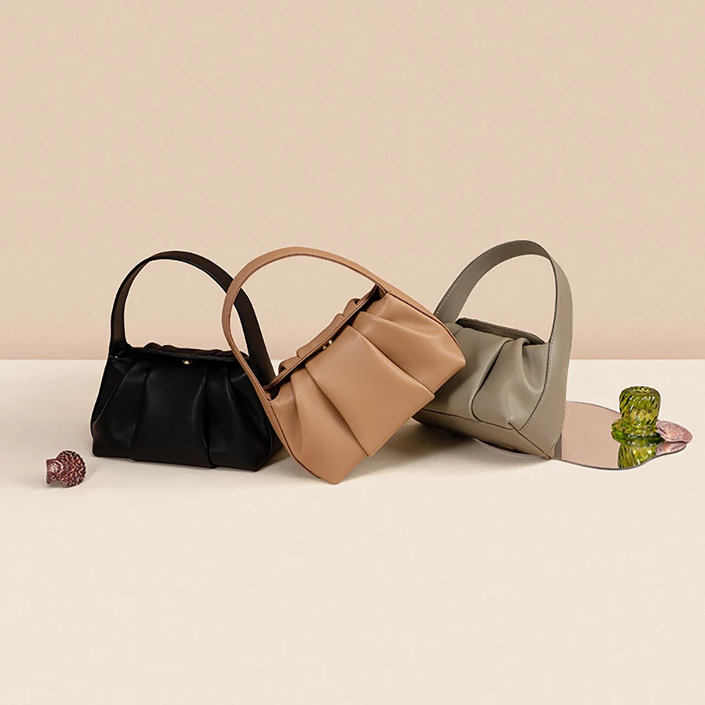 Manufacturer Custom Wholesale Cloud Pleated Genuine Leather Fashion Women Handbags Retro Casual Simple Cow Leather Women Bags