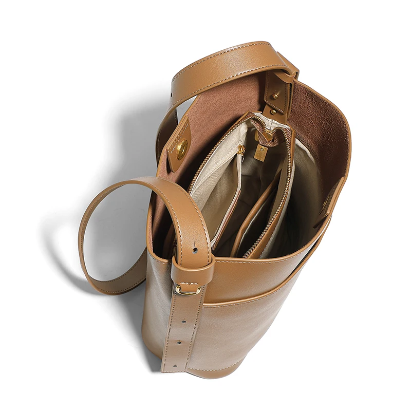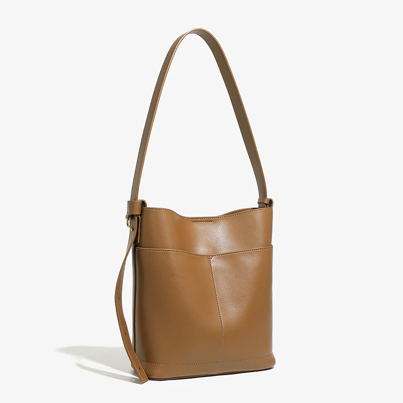 Designer Vintage Popular Ladies Women Crossbody Shoulder Hand Bags Fashion Casual Large Capacity Cowhide Leather Bucket Bag 2026