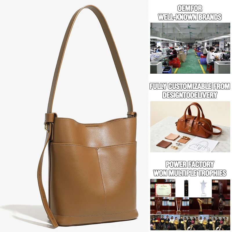 Manufacturer Wholesale Women's Retro Leather Bucket Bag OEM/ODM Custom High-quality Shoulder Bagcrossbody Bag for Ladies logo
