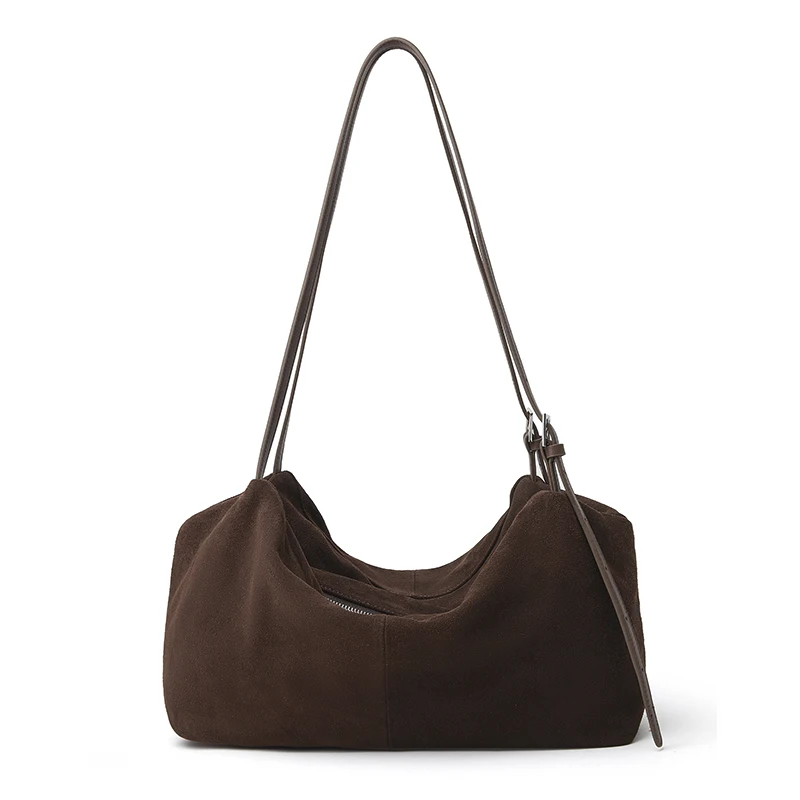 Manufacturer Wholesale Custom Retro Women's Genuine Leather Fashion Lady Frosted Crossbody Shoulder Bag Zipper Closure Large