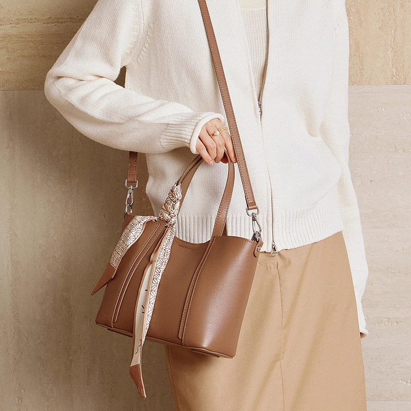 Designer Vintage Popular Ladies Women Crossbody Shoulder Hand Bags Fashion Casual Large Capacity Cowhide Leather Bucket Bag 2026