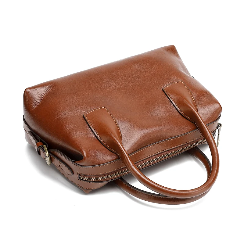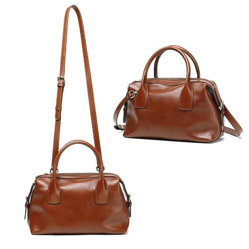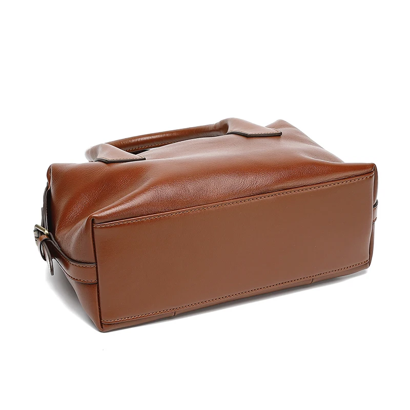 Wholesale Customized Retro Women's High-quality Genuine Leather Durable Zipper Closure Pillow Shape Crossbody Shoulder Handbag
