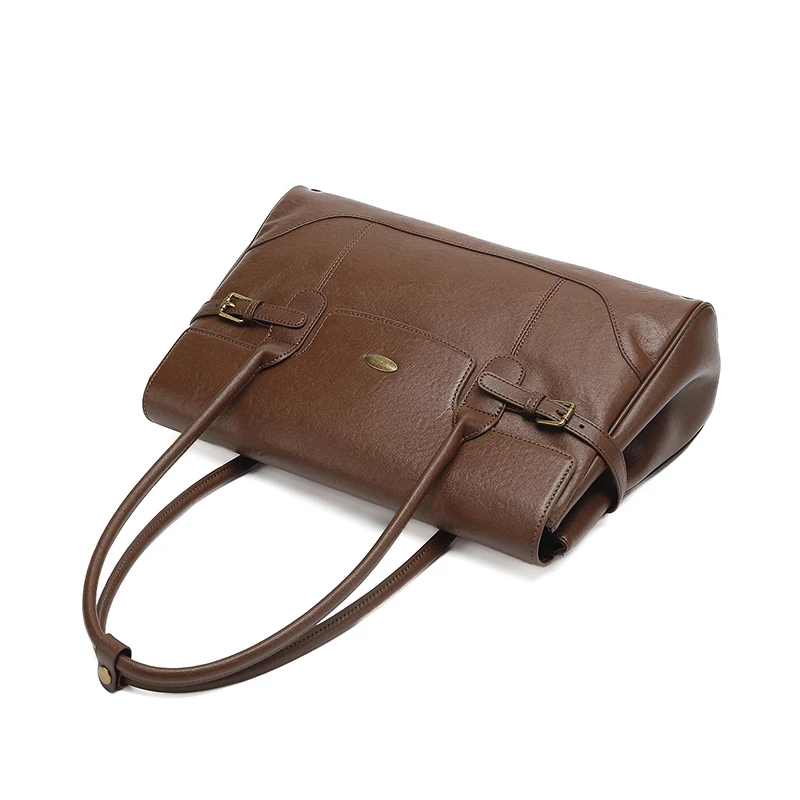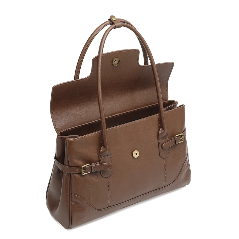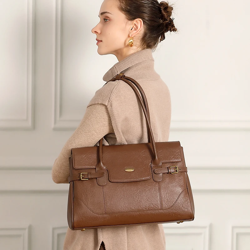 Wholesale Custom High-quality Women's Genuine Leather Handbags Retro Minimalism Button Large Capacity Waterproof Shoulder