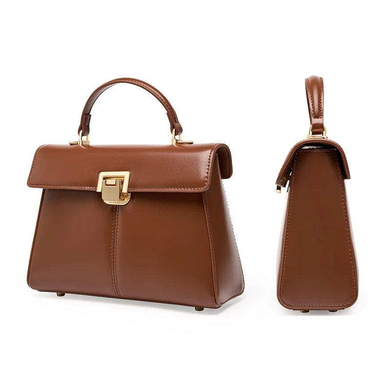 Women's Custom High Quality Genuine Leather Vintage Waterproof Crossbody Handbag with Cover Closure Designer Luxury Travel Bag