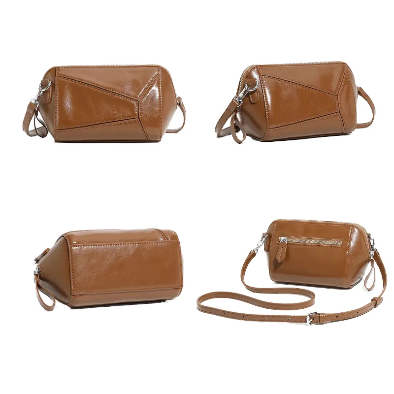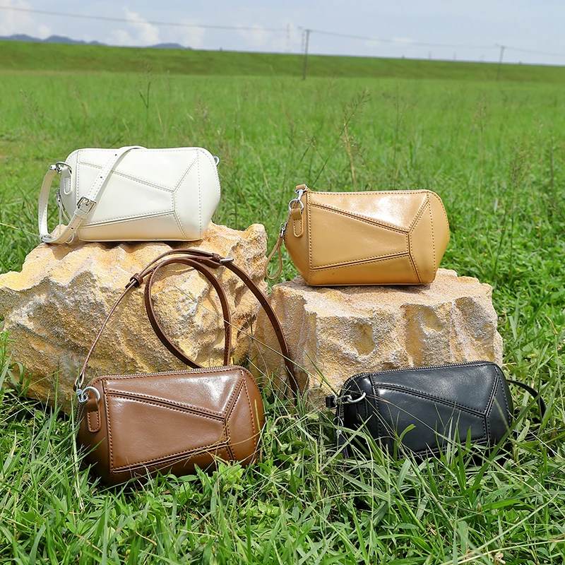Factory Wholesale Women's Fashion Retro Genuine Leather Geometric Crossbody Shoulder Bag OEM/ODM Customized High-quality