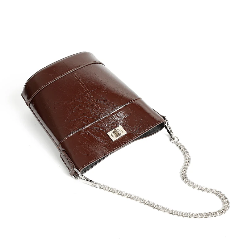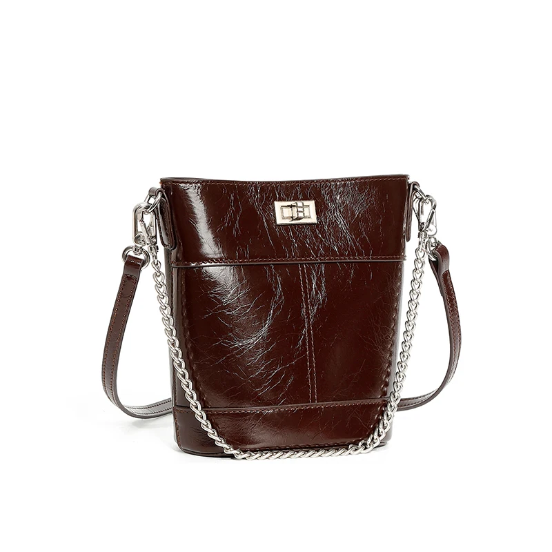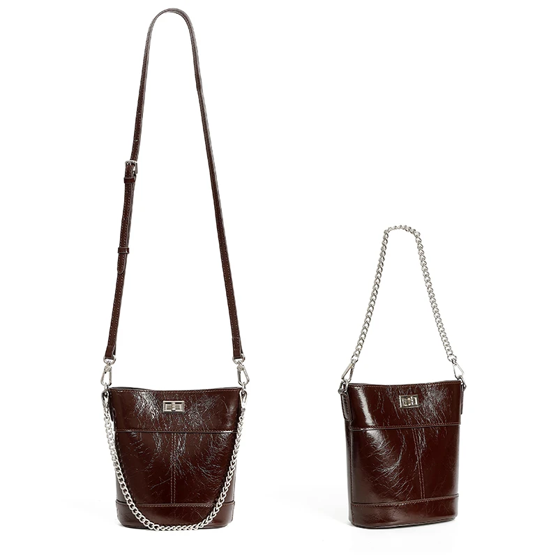 Manufacturer Wholesales Vintage Women's Top Grade Leather Shoulder Bags High-quality Oiled Leather Bucket Bags for Ladies