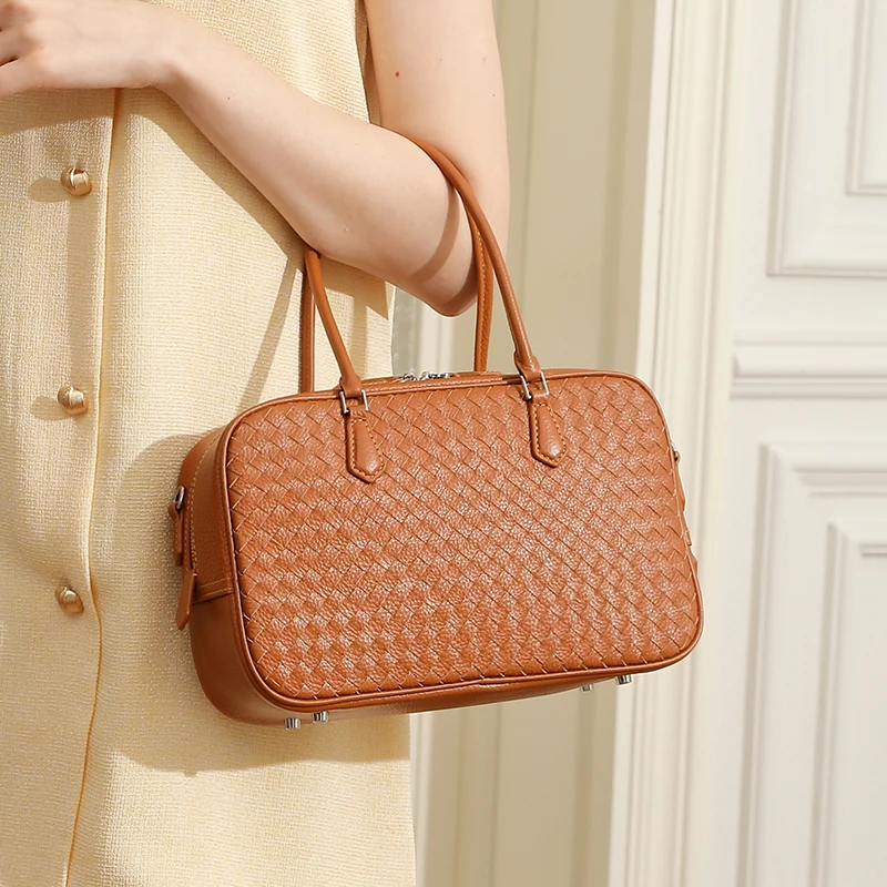 Wholesale Customized Women's Retro Leather Woven Shoulder Bag High Quality Minimalism Handbag for Women