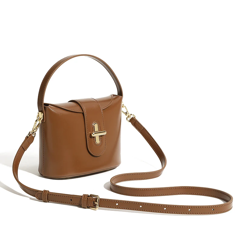 Designer Vintage Popular Ladies Women Crossbody Shoulder Hand Bags Fashion Casual Large Capacity Cowhide Leather Bucket Bag 2026
