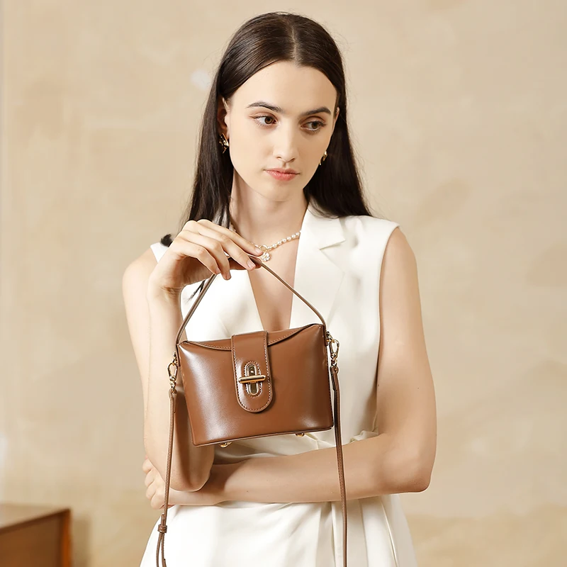 Customized Wholesale 2026 Trend Women's Fashion Vintage Genuine Leather Handbag Light Luxury Diagonal Cross Shoulder Design Bag