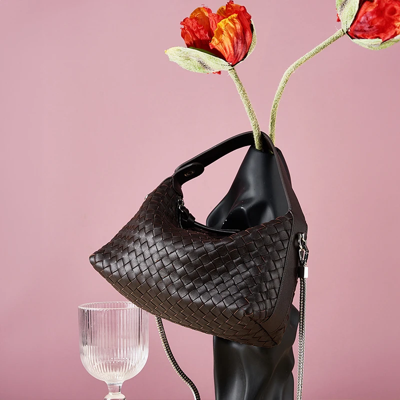 Manufacturer Wholesale Custom Retro Women's Top Grade Leather Handbags High-quality Sheepskin Shoulder Bag Woven Bags for Ladies