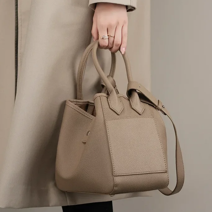 Designer Vintage Popular Ladies Women Crossbody Shoulder Hand Bags Fashion Casual Large Capacity Cowhide Leather Bucket Bag 2026