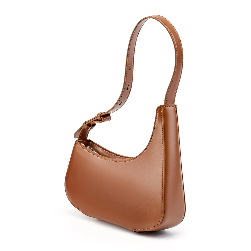 Manufacturer Wholesale Custom Women's Retro Leather Shoulder Bags OEM/ODM High-quality Cowhide Luxury Crescent Bag Zipper