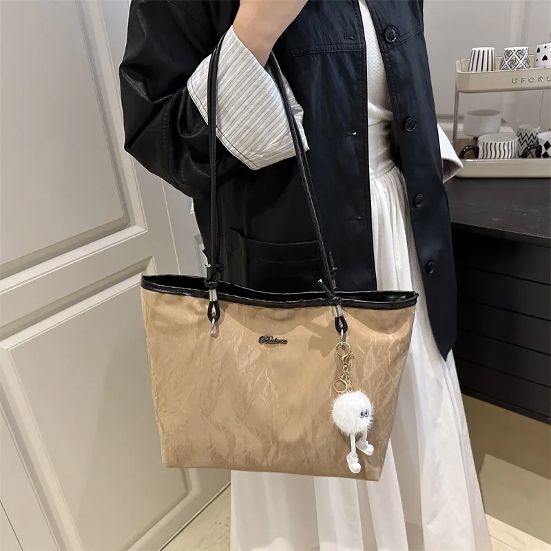2026 Large Capacity Women Handbag New Fashion Casual PU Leather Shoulder Bag Tote Bag with Pendant