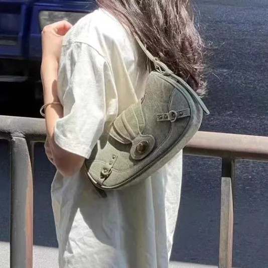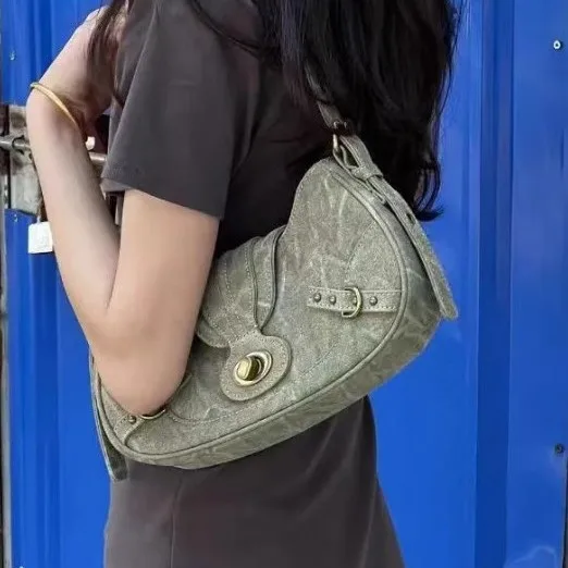 A-191 Summer Retro American Style One-Shoulder Armpit Handbag Stylish Polyester Zip Closure Versatile Lady Fashion New Handbag