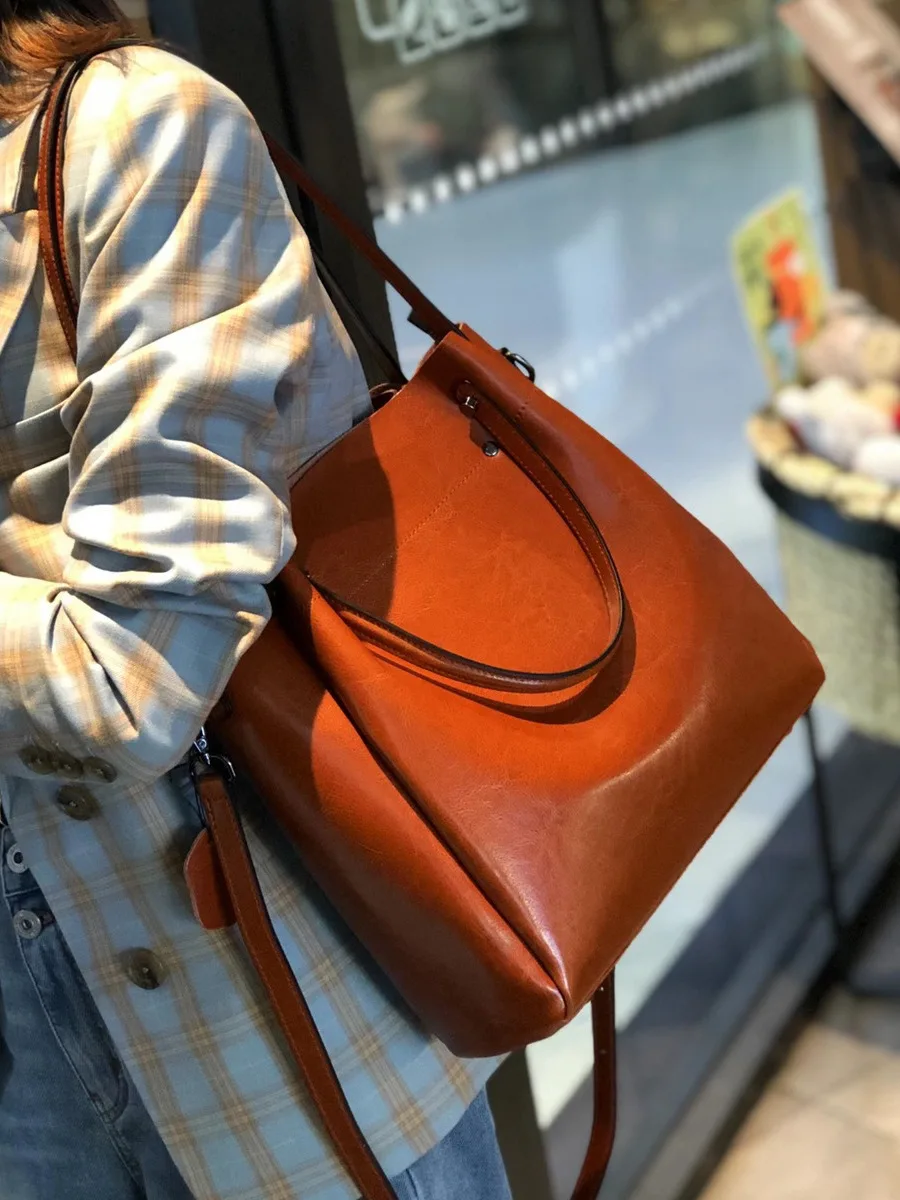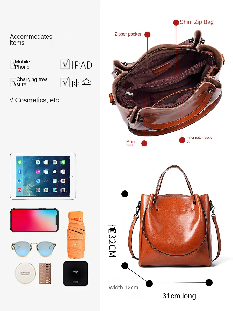 Designer Vintage Popular Ladies Women Crossbody Shoulder Hand Bags Fashion Casual Large Capacity Cowhide Leather Bucket Bag 2026