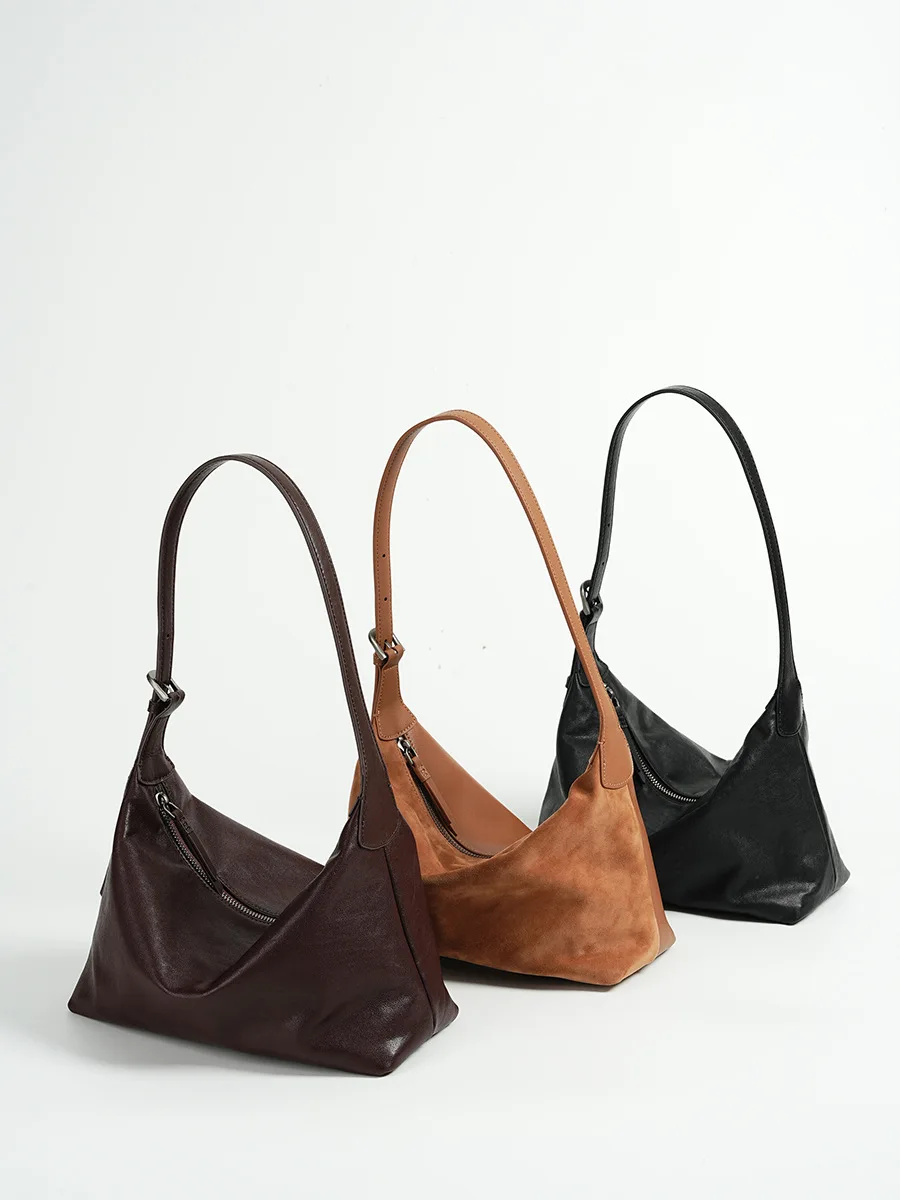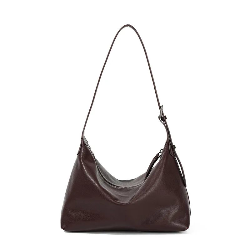 A-106 Hobo High-End Handbag Underarm Large Capacity Zip All-Match Allergic Genuine Cowhide Top Layer All-Purpose for Men/Women