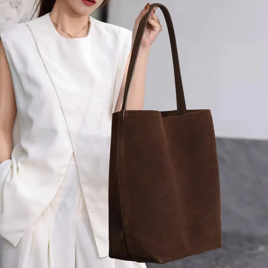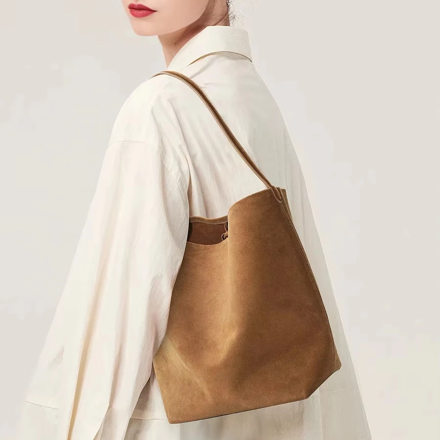 A-99 2026 Women's High-End Shoulder Bags Genuine Leather Large Capacity Frosted Cowhide Bucket Style Genuine Leather Woman Bag