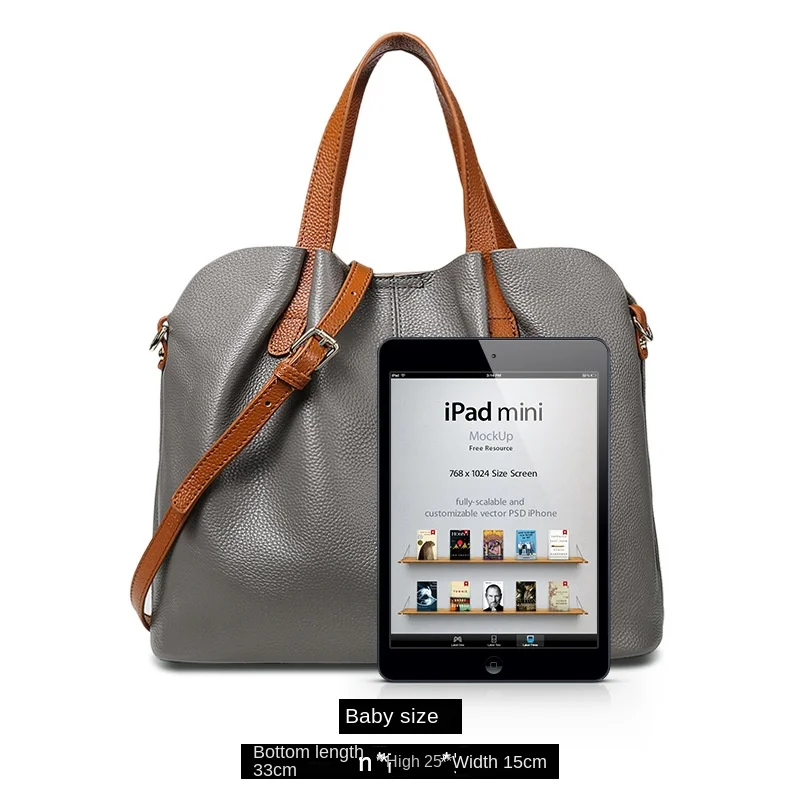 A-93 High-Class Large-Capacity Women's Cowhide Leather Tote Bag New Genuine Niche Crossbody Handbag Zipper Polyester Top-Layer