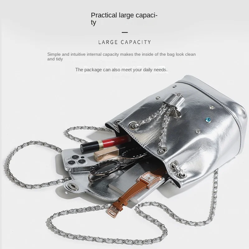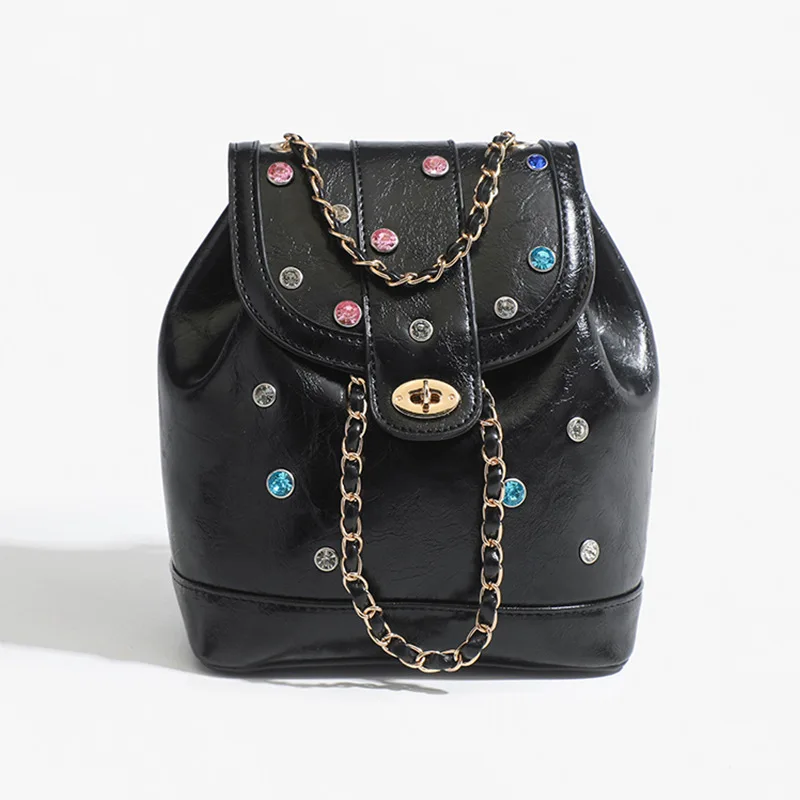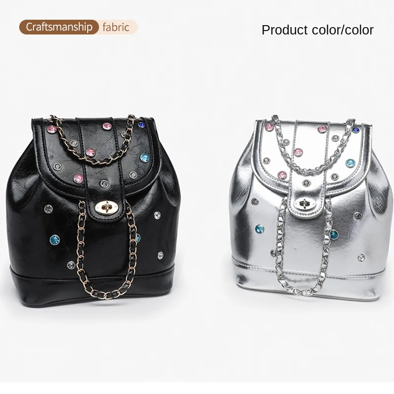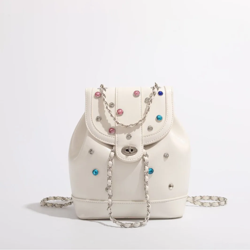 A-70 Women's Light Luxury Niche Colorful Diamond Backpack New Style Shoulder Chain Mainly Made PU Polyester Cover