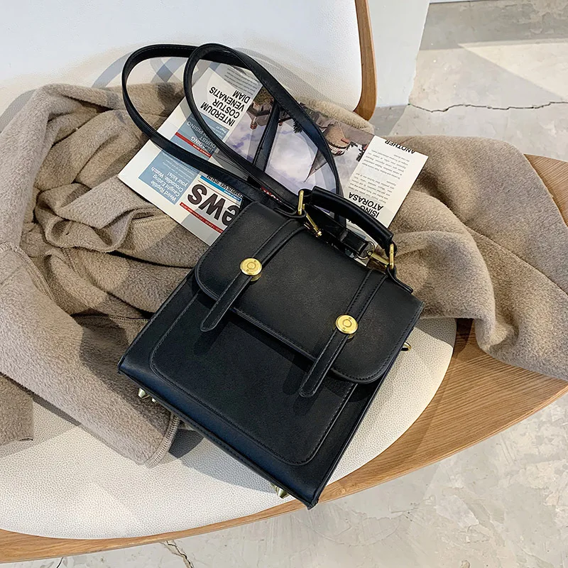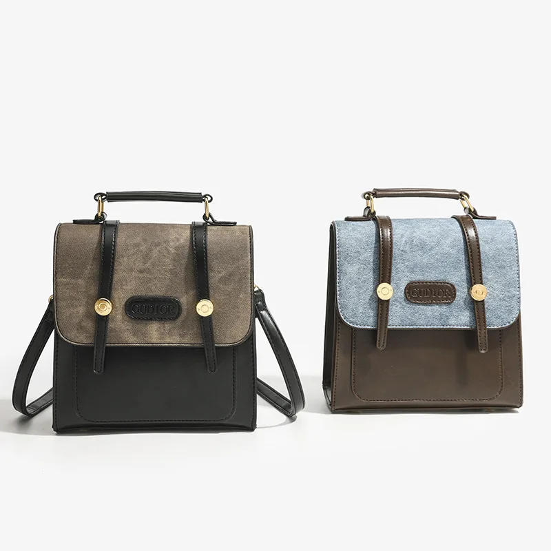 A-68 Women's Retro American Style Backpack Niche Design Three Small Schoolbags British Main Material PU Polyester for Laptop