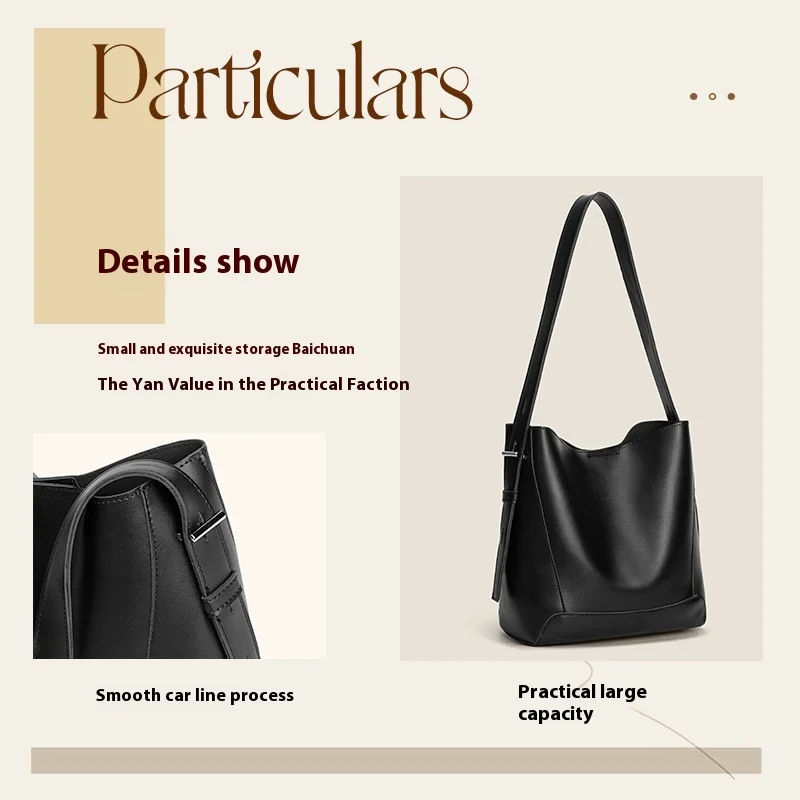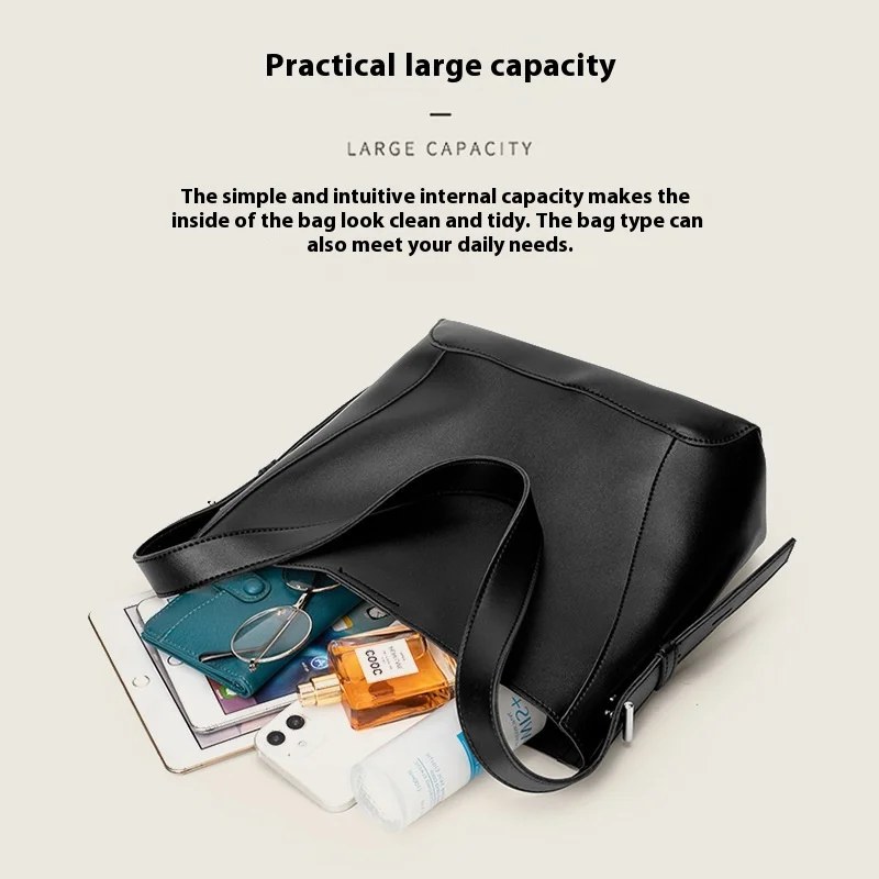 A-63 Simple Autumn Winter Bucket Bags All-Match PU Shoulder Tote Zipper Closure Large Capacity Underarm Bag New Fashion Style