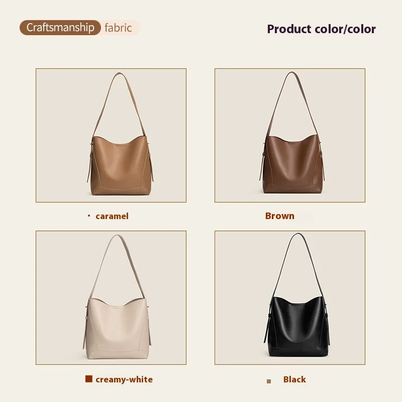 Designer Vintage Popular Ladies Women Crossbody Shoulder Hand Bags Fashion Casual Large Capacity Cowhide Leather Bucket Bag 2026