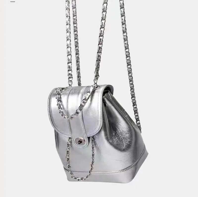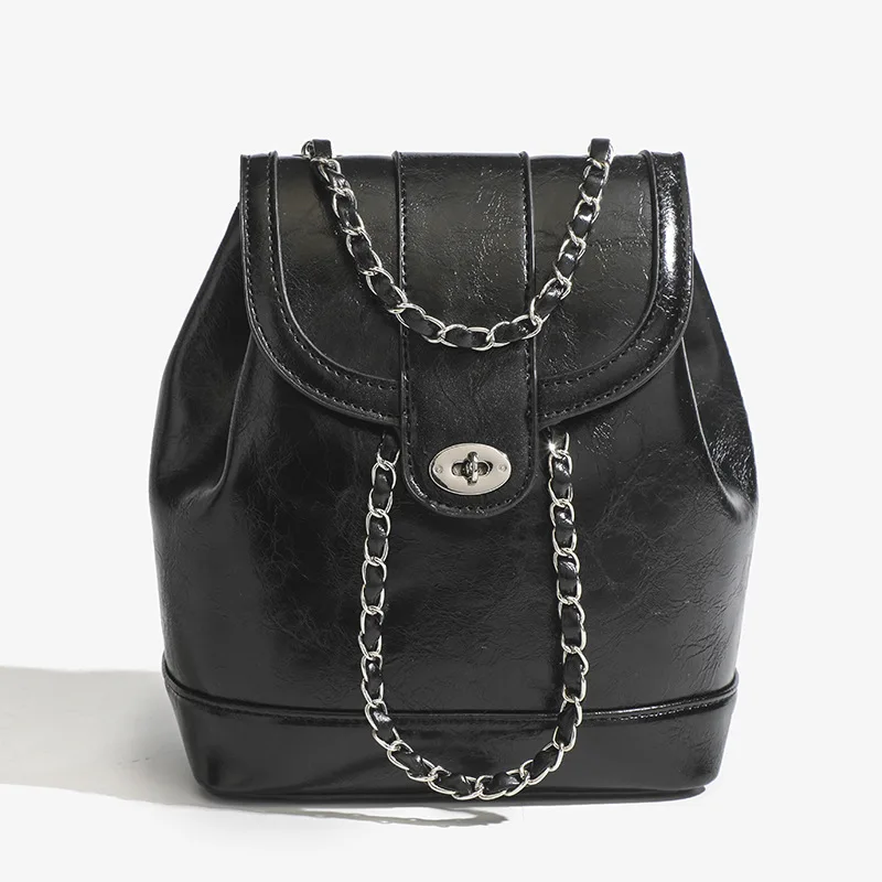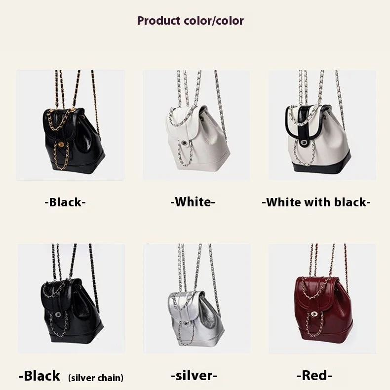 A-61 High-End Women's Korean Style Backpack Zip Simple Contrast Color Shoulder Chain Bag All-Match Fashionable Polyester Autumn