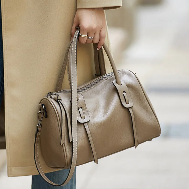 A-48 Women's Genuine Cowhide Large Capacity Zip Closure Pillow Bag Retro Fashion Spring Summer Collection Women's Shoulder Bag