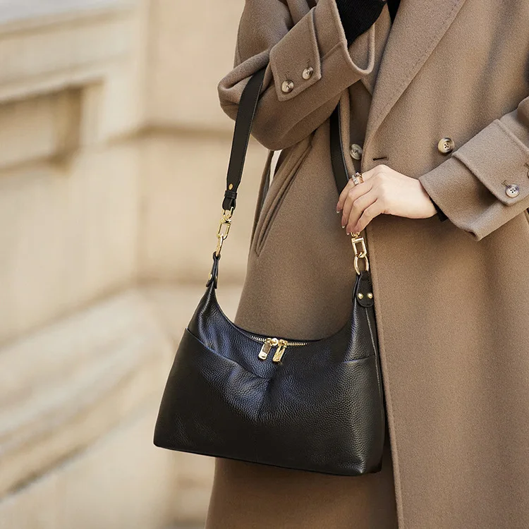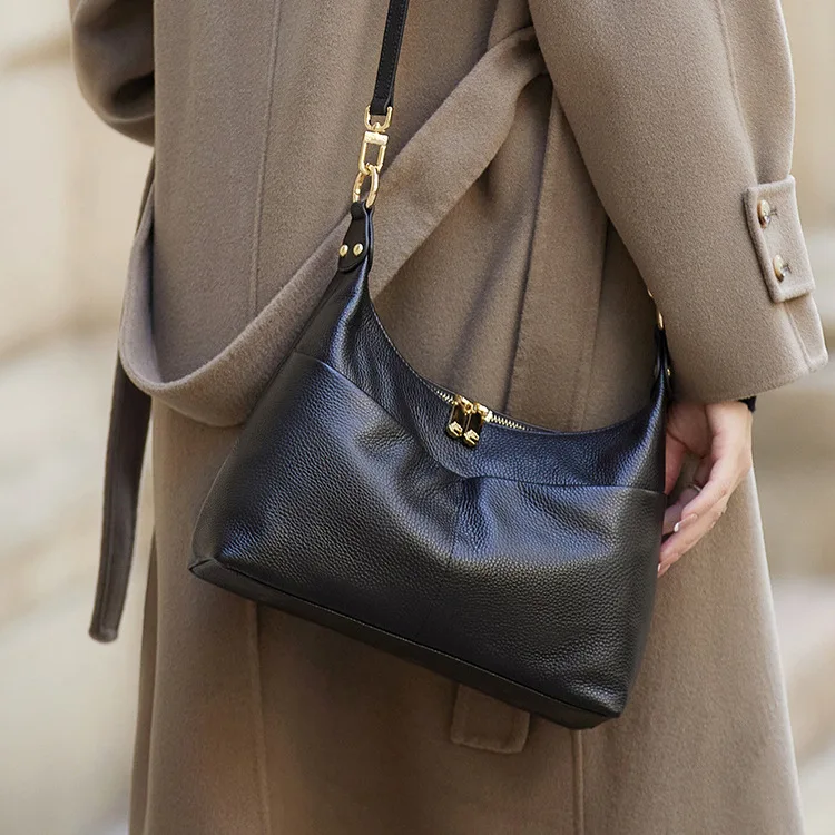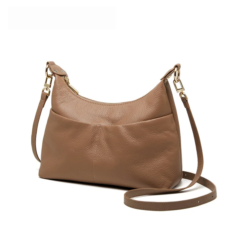 A-46 2026 High-End Women's Genuine Leather Messenger Bag Fashionable Geometric Zipper Shoulder Bags Genuine Leather Woman Bag