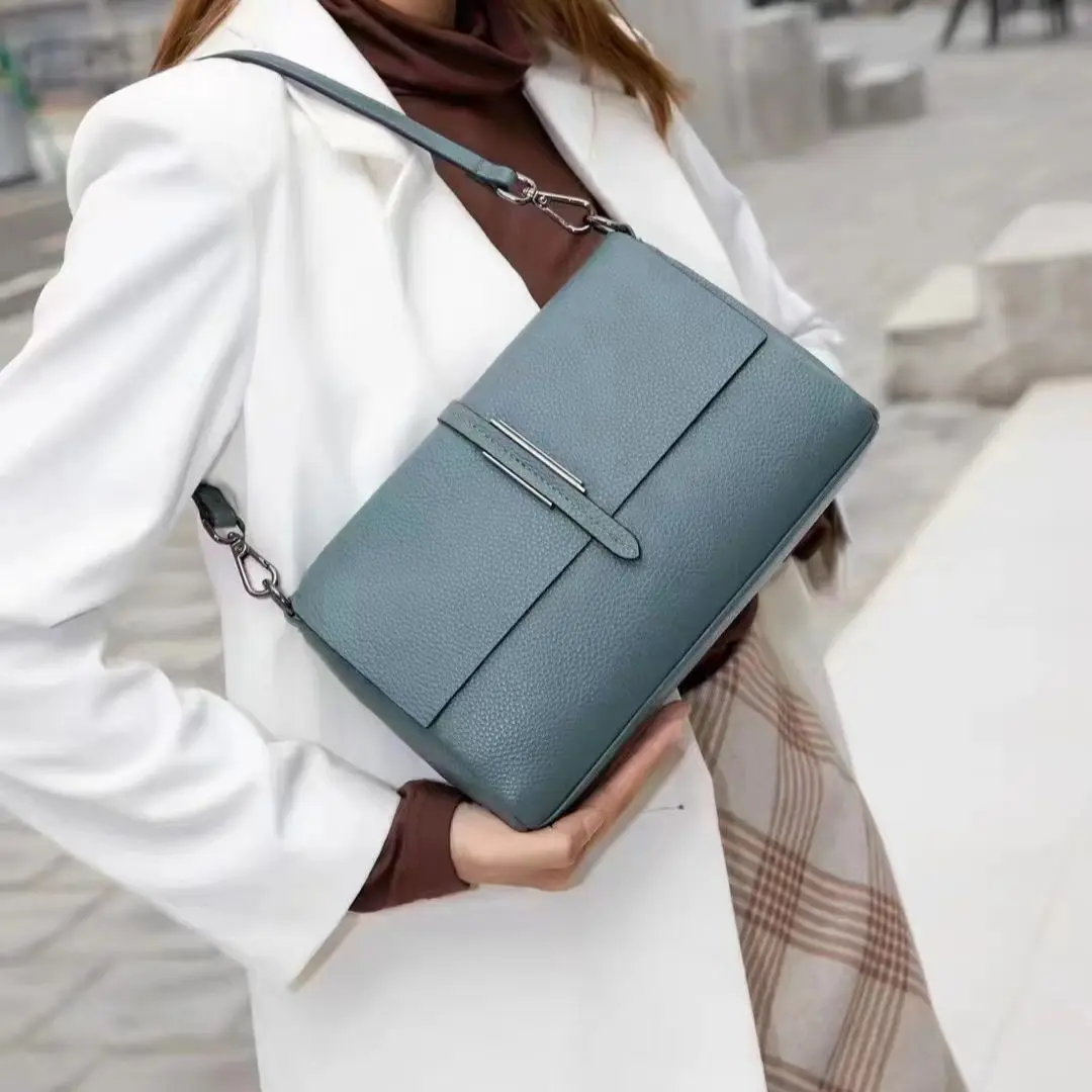 Designer Vintage Popular Ladies Women Crossbody Shoulder Hand Bags Fashion Casual Large Capacity Cowhide Leather Bucket Bag 2026