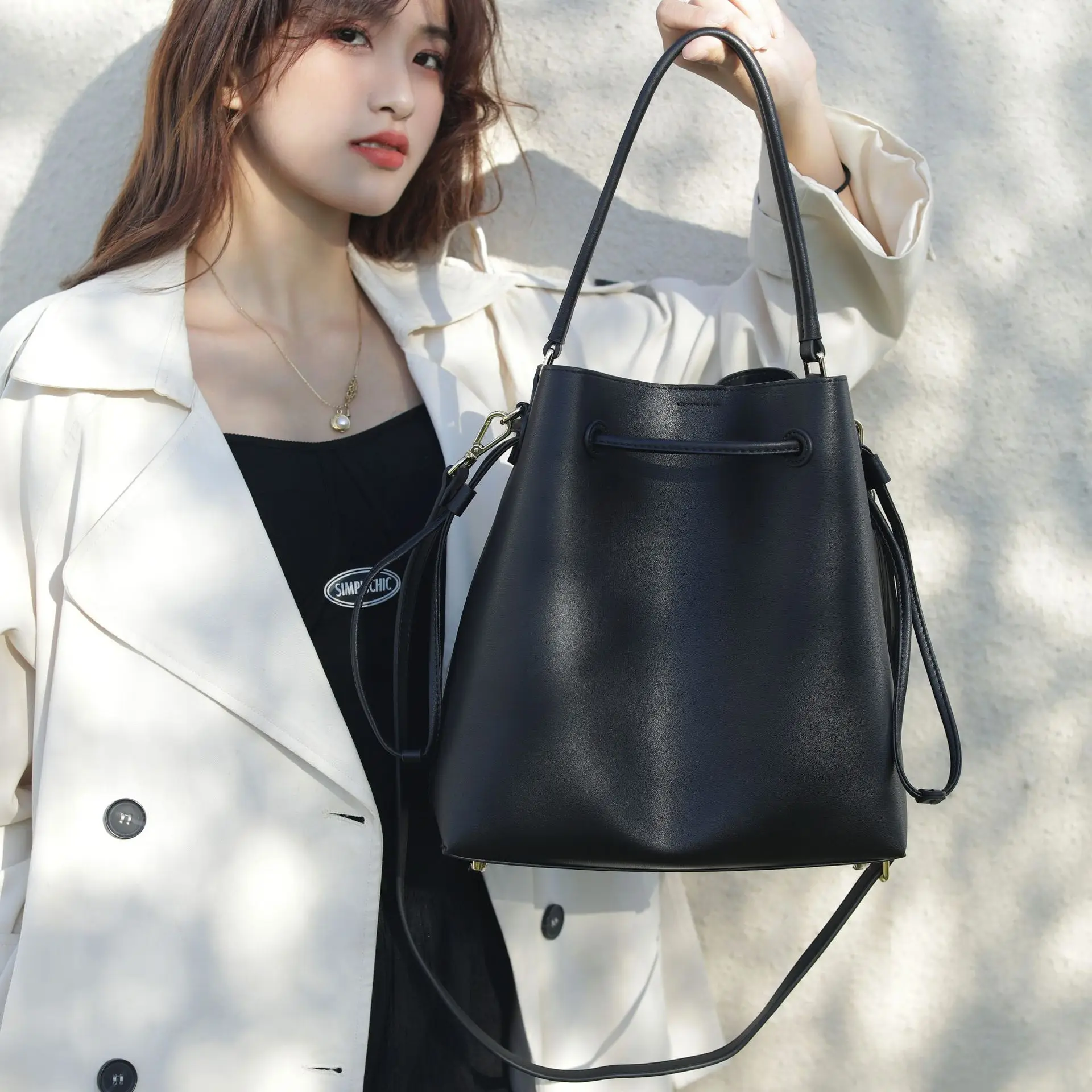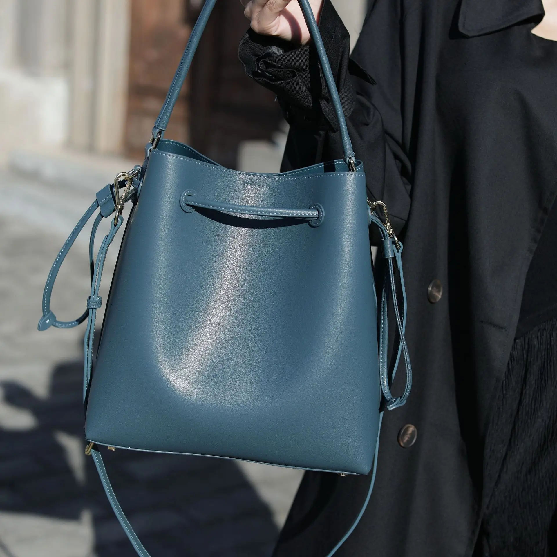 Designer Vintage Popular Ladies Women Crossbody Shoulder Hand Bags Fashion Casual Large Capacity Cowhide Leather Bucket Bag 2026