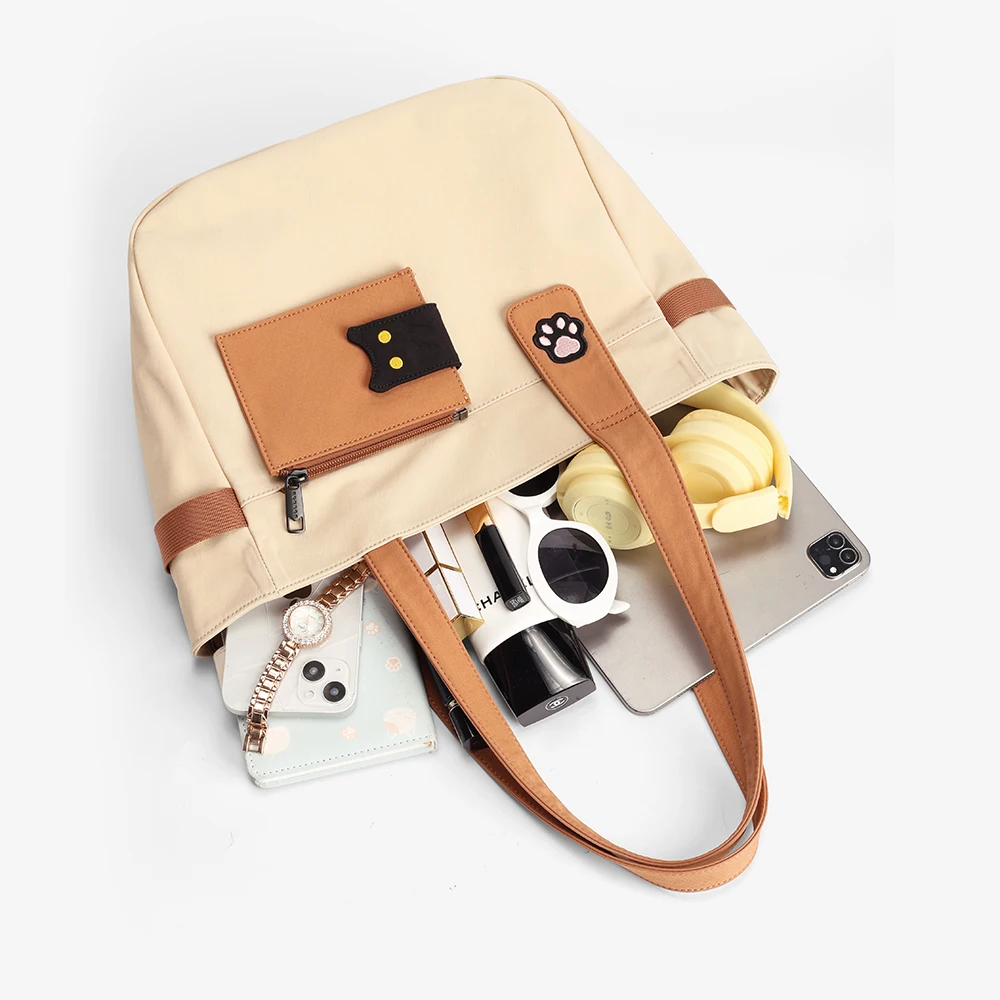 NOXXON Polyester Tote Bag Waterproof Single Shoulder Bag Custom Tote With Zipper Large Capacity BookBag Tote Bag for College