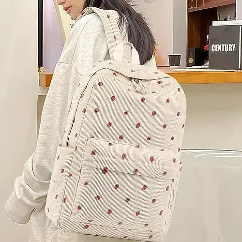 Elementary High School Corduroy Laptop Daypack for Teen Girls with Zipper Closure Polyester Lining Bookbags for Travel School