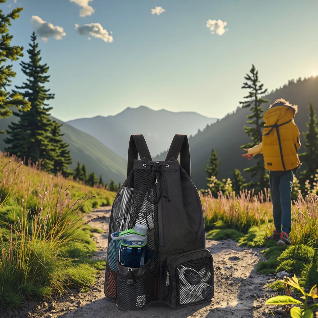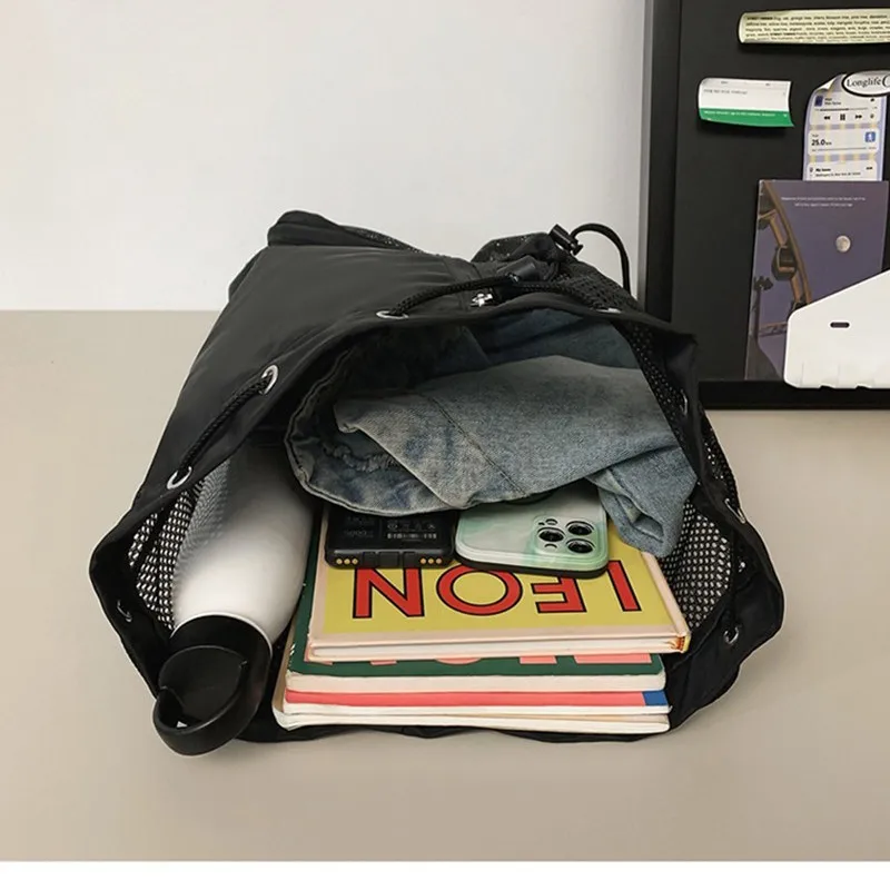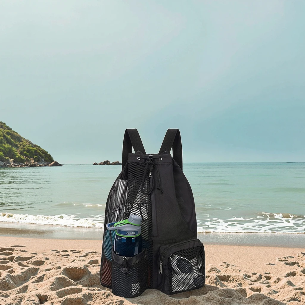 Custom Nylon Foldable Mesh Polyester Gym Drawstring Backpack Wet Pocket Net Beach Swim Bag with Logo
