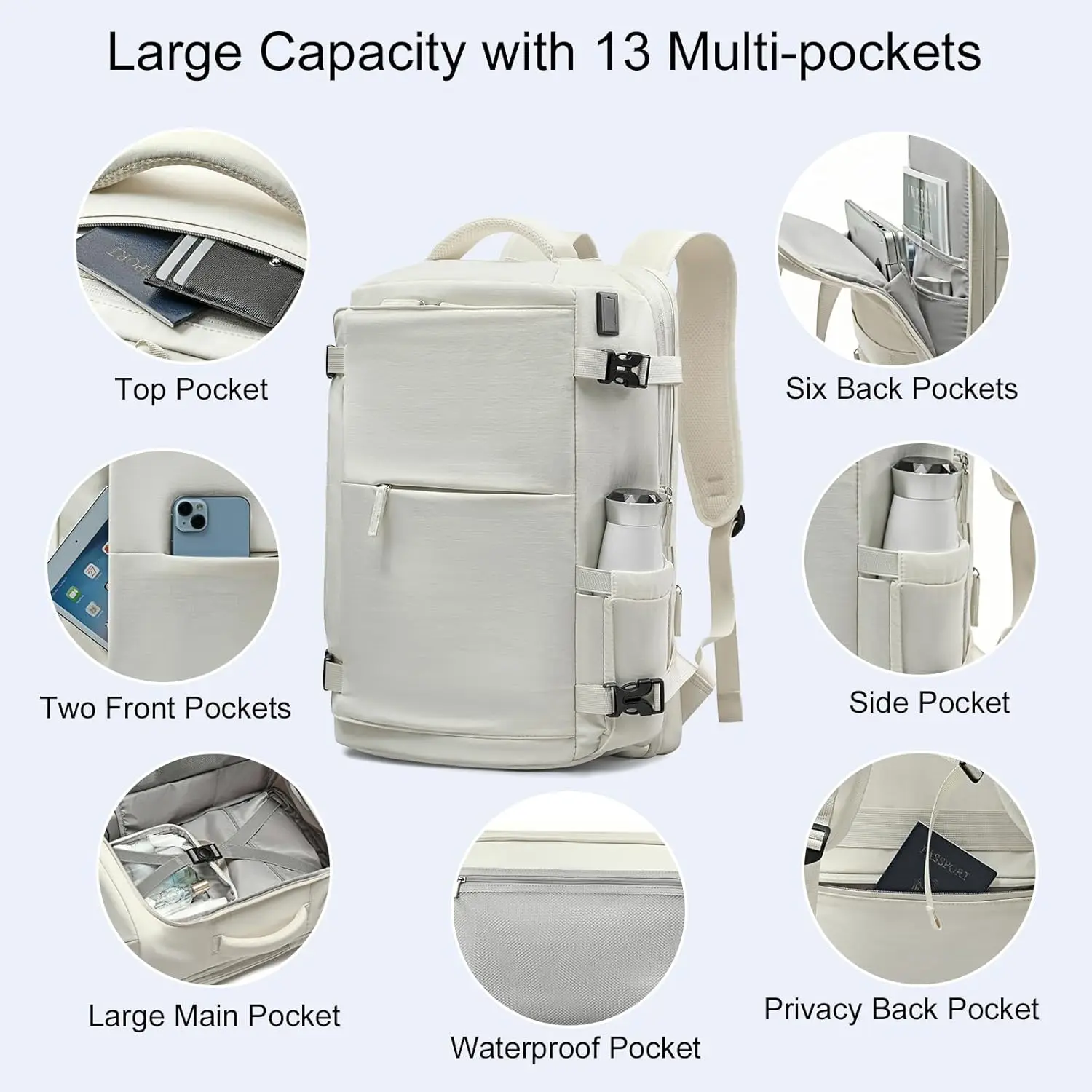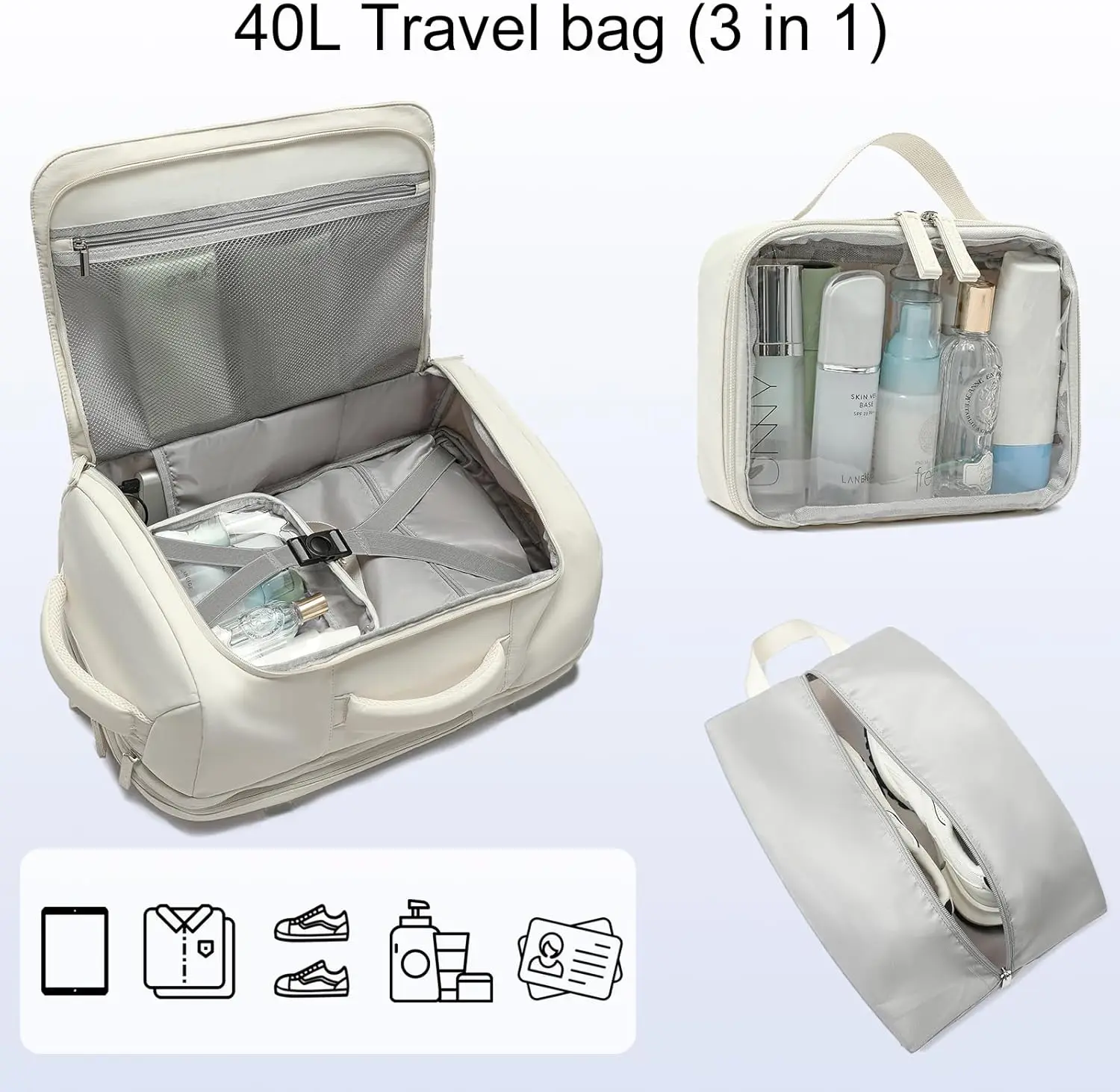 40L Beige Laptop Backpack Lightweight Expandable Flight Approved Water Resistant Travel Backpack With Makeup Bag for Women/Men