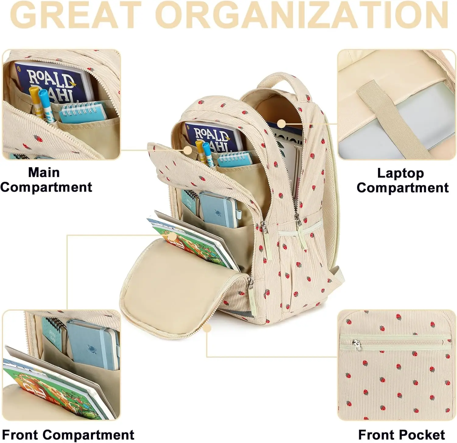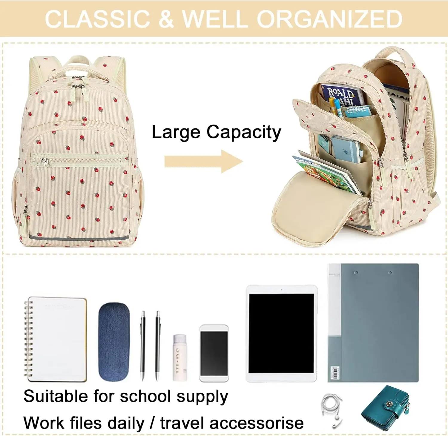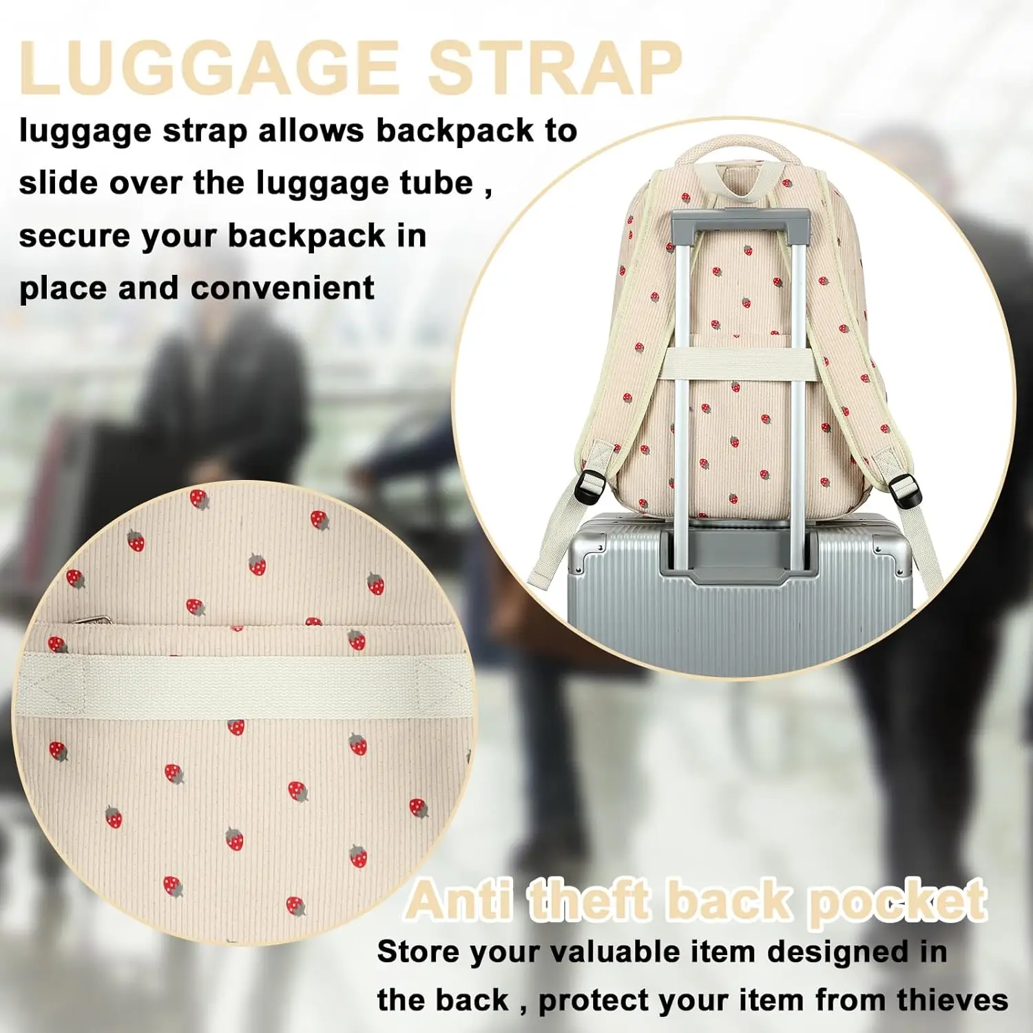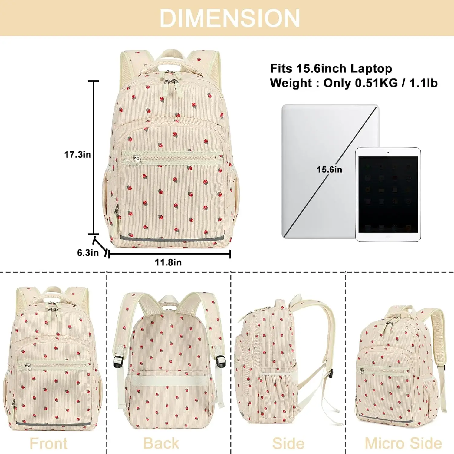 Women's Backpack 15.6-inch Notebook Computer Schoolbag College Bags Band USB Port