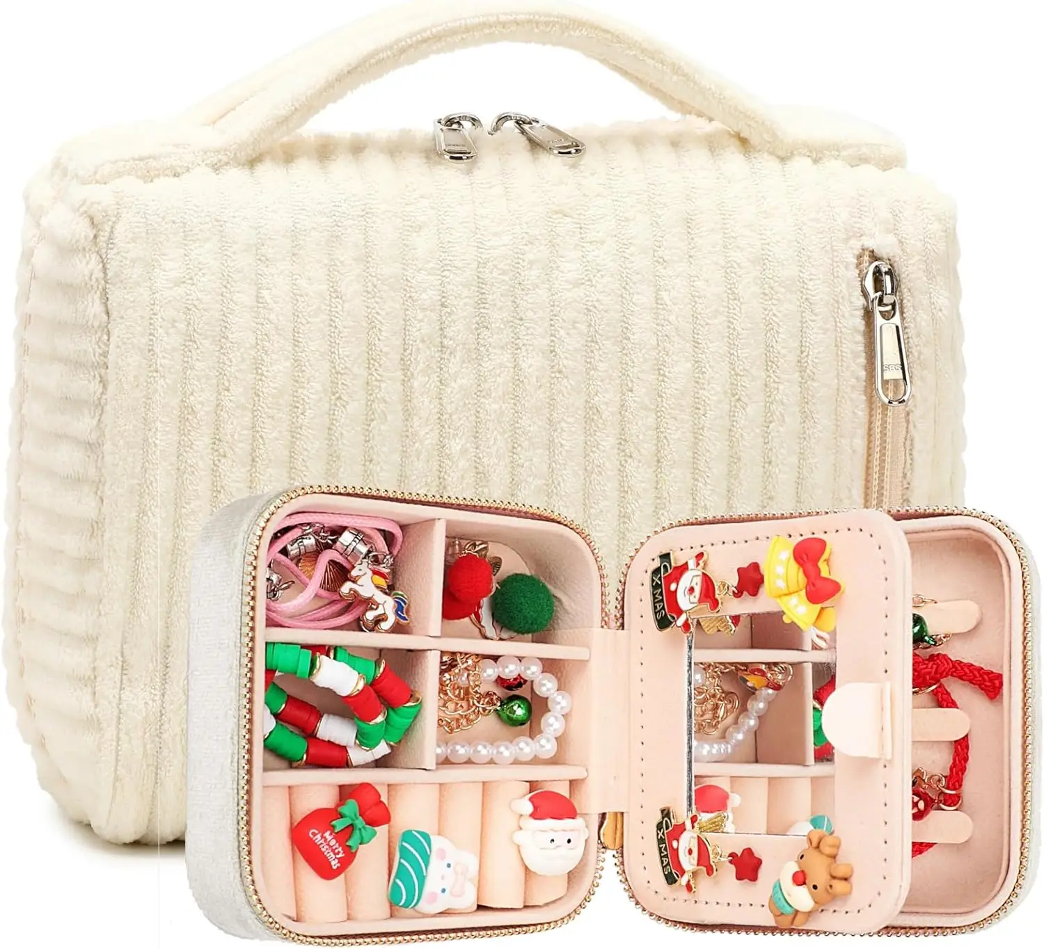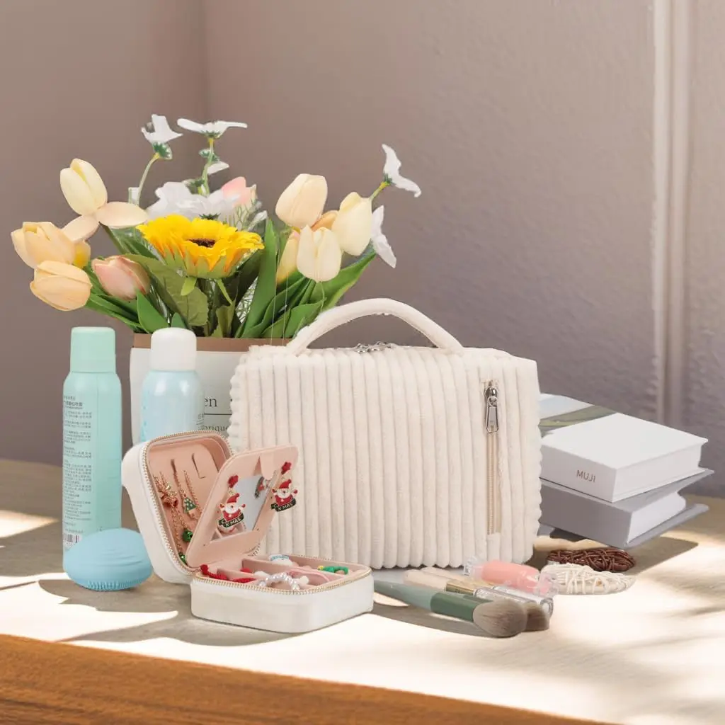 Travel Cosmetic Bag Jewelry Box Portable Corduroy Cosmetic Bag Jewelry Box Organizer for Women Girls