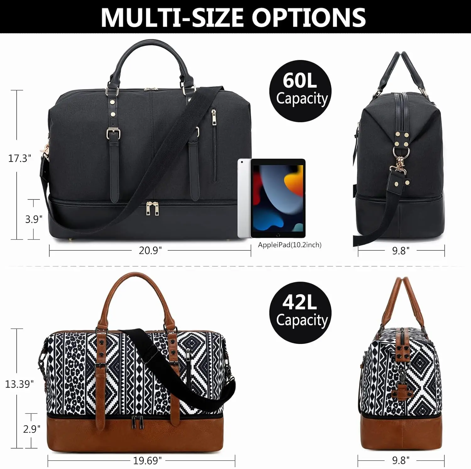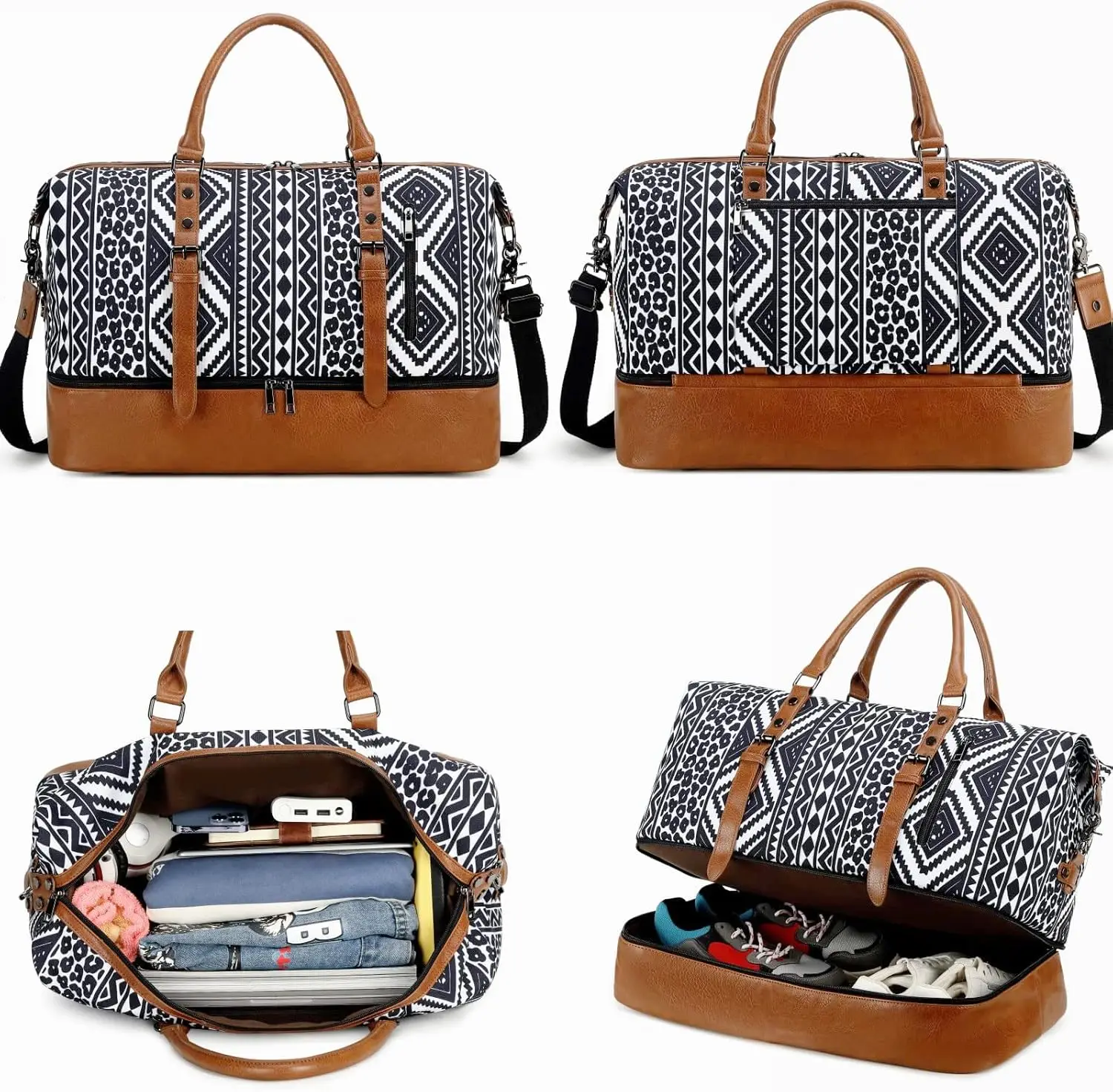 Custom Logo High Quality Water Resistant Bohemian Travel Duffel Bag with Pu Leather for Travel Weekender Overnight Sport Outdoor