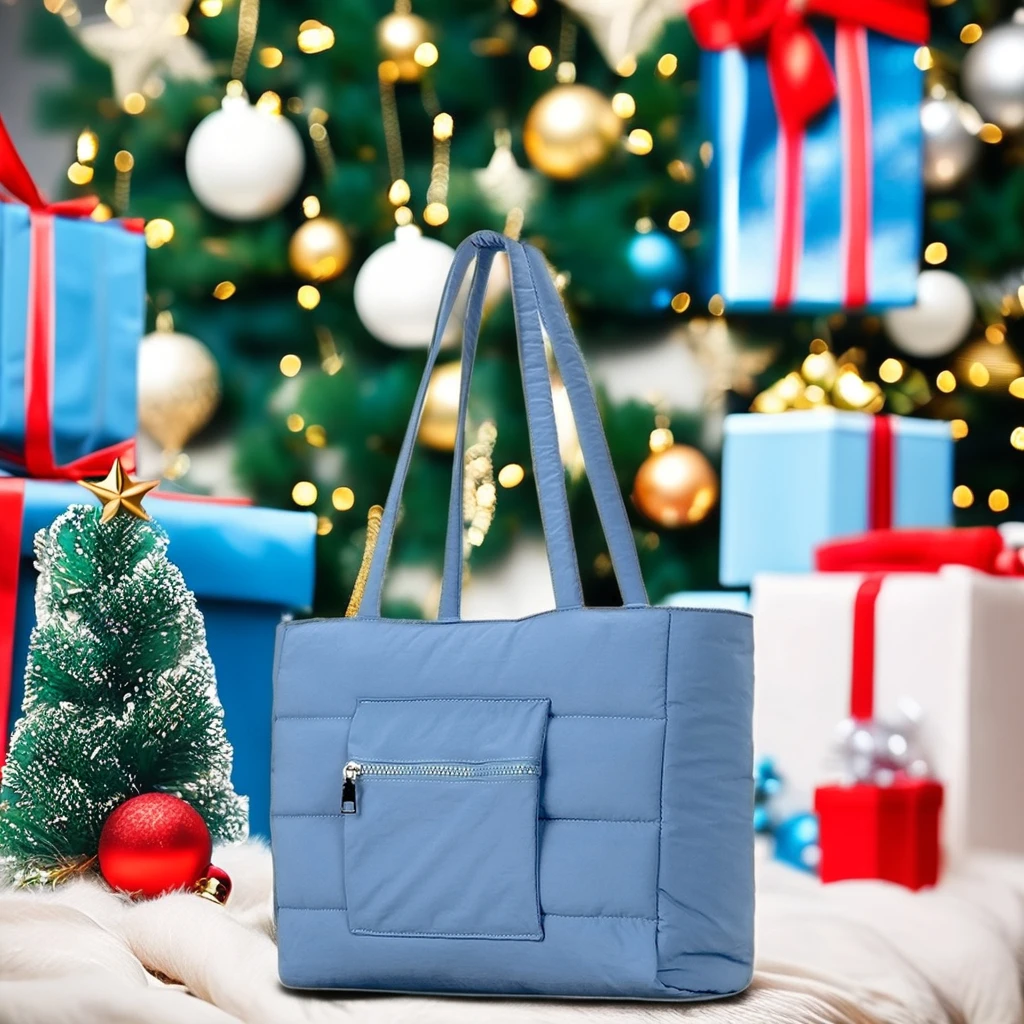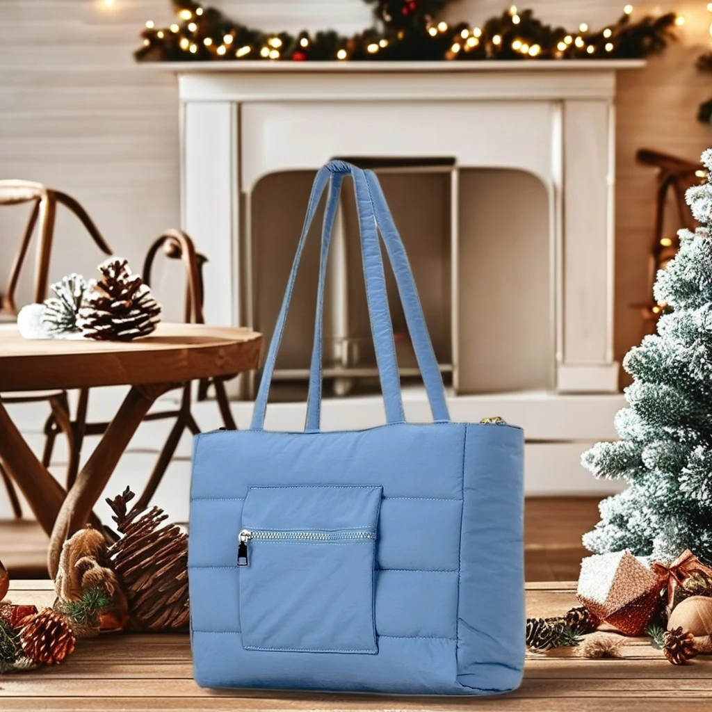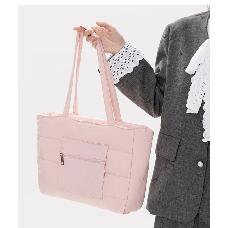New Nylon Cloth Tote Bag Soft Fluffy Clip Cotton Shoulder Handbag Large Capacity Solid Color Computer Bag for Women Wholesale