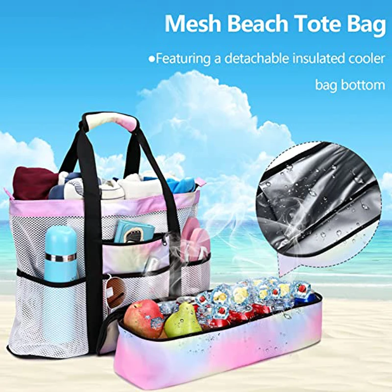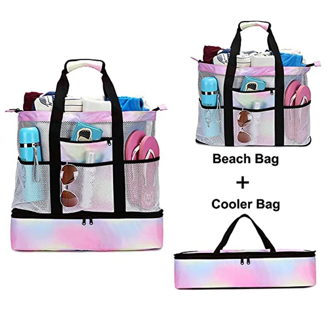 Custom Large Capacity Waterproof Cooler Tote Summer Women's Beach Bag Zipper Closure Polyester Lining Pool Use