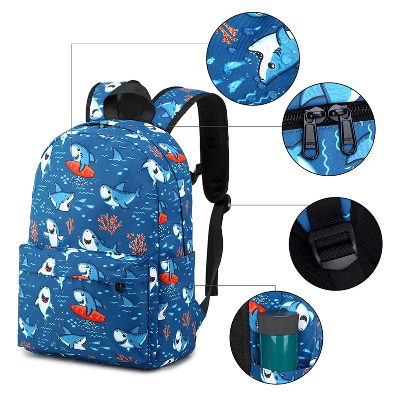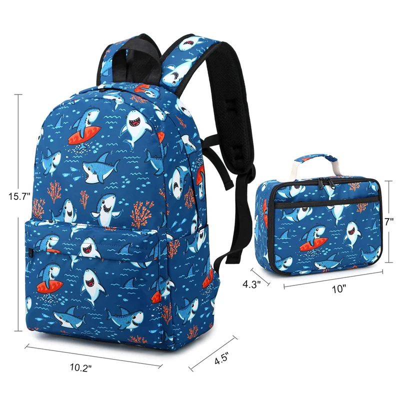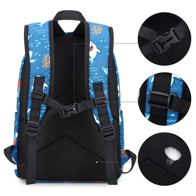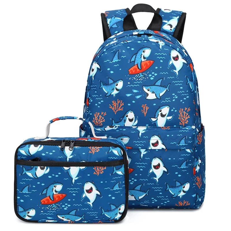 Custom Sac Pour Ecolier Child Schoolbag with Lunch Box Bag Set Kids Backpack Shark School Bags for Boys